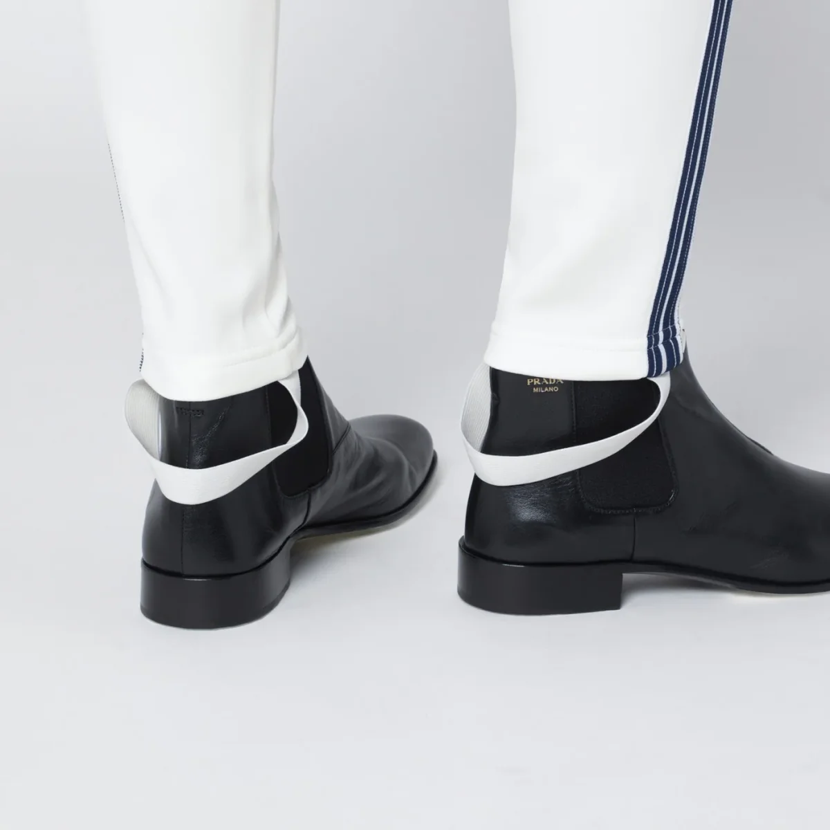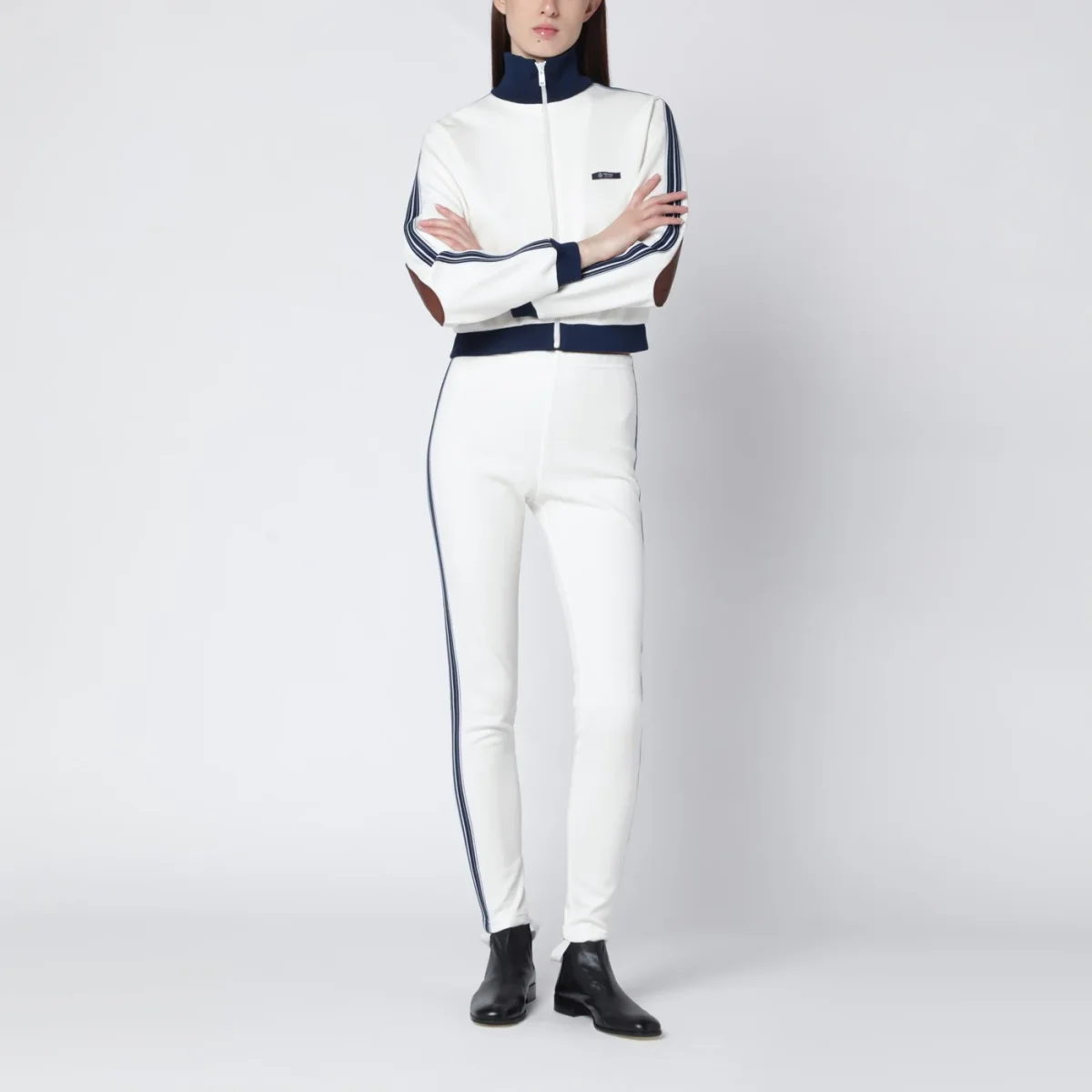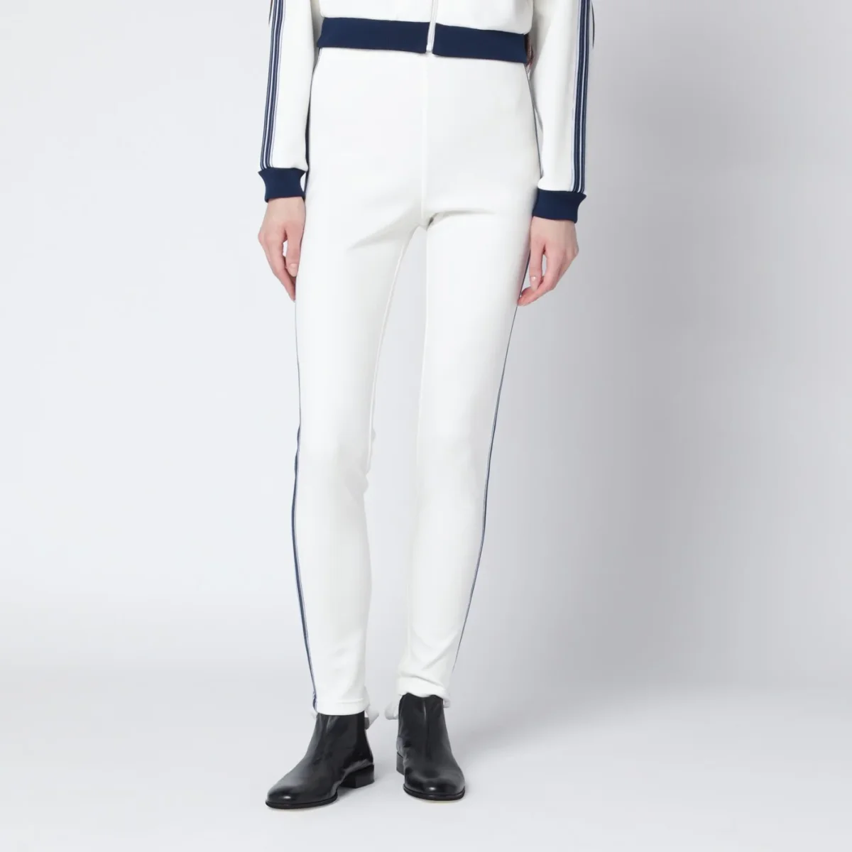 Leggings di Prada in tessuto tecnico avorio• vestibilità aderente• vita elasticizzata• etichetta sartoriale con logo lettering sul retro• staffa elastica sul fondo• banda in maglia a righe sui fianchi
