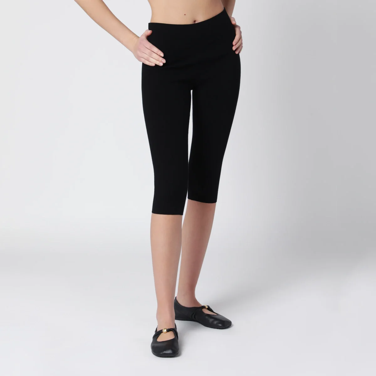 Leggings corti neri in misto viscosa