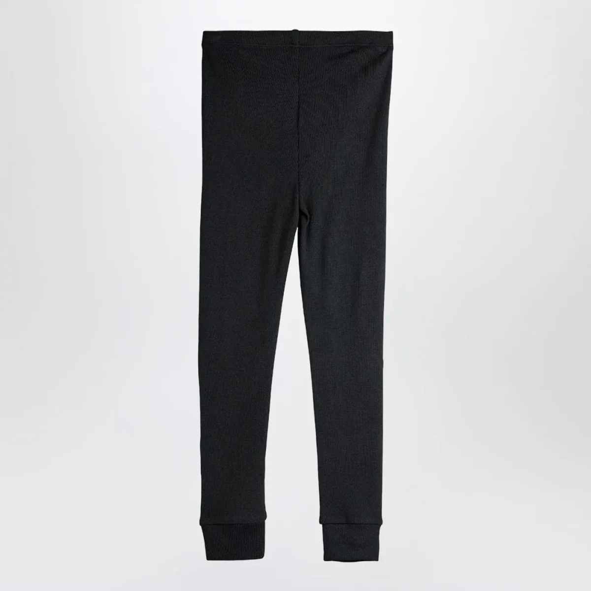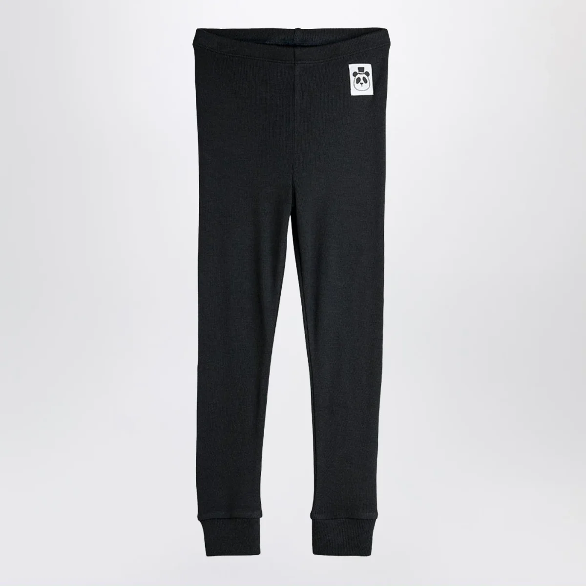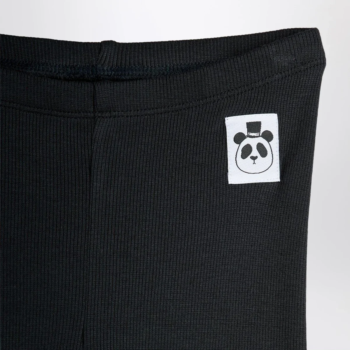 Leggings di Mini Rodini in micromodal leggermente elasticizzato nero, caratterizzato da etichetta con panda sul davanti, vita elasticizzata e caviglie a costine.
