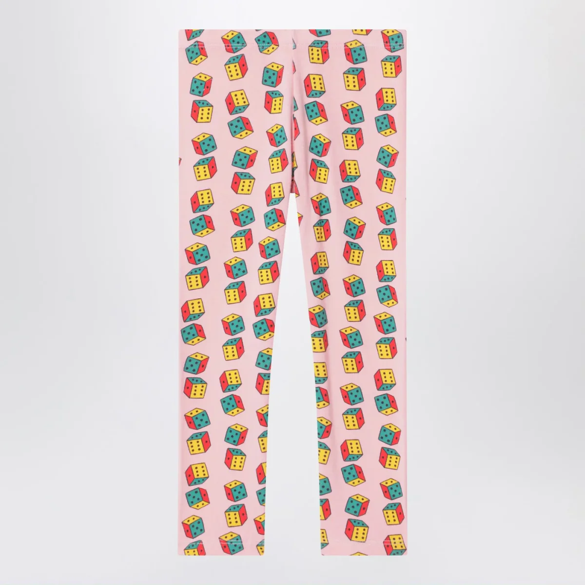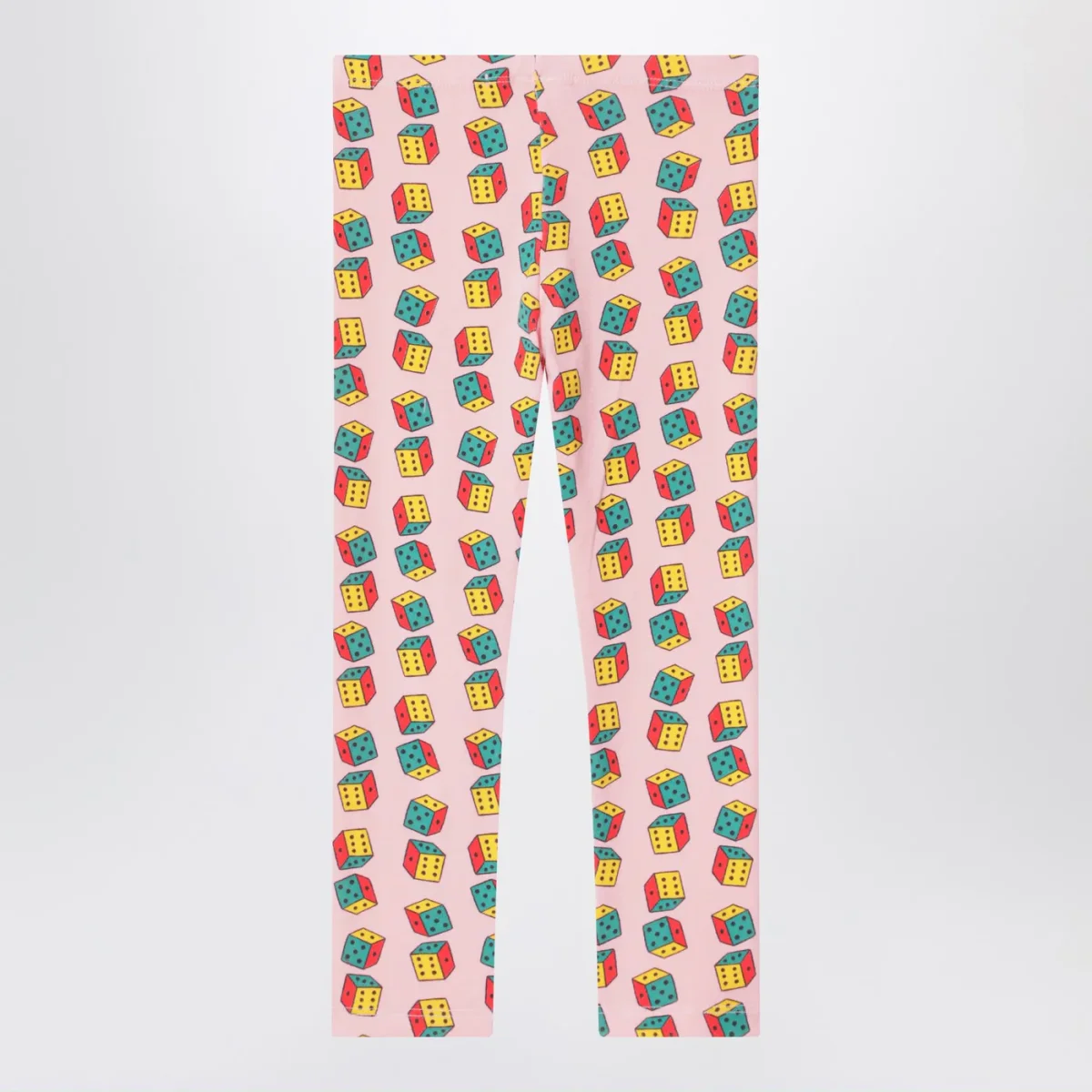 Leggings di Bobo Choses in misto cotone organico rosa, caratterizzati da stampa con dadi colorati all over e vita elasticizzata.