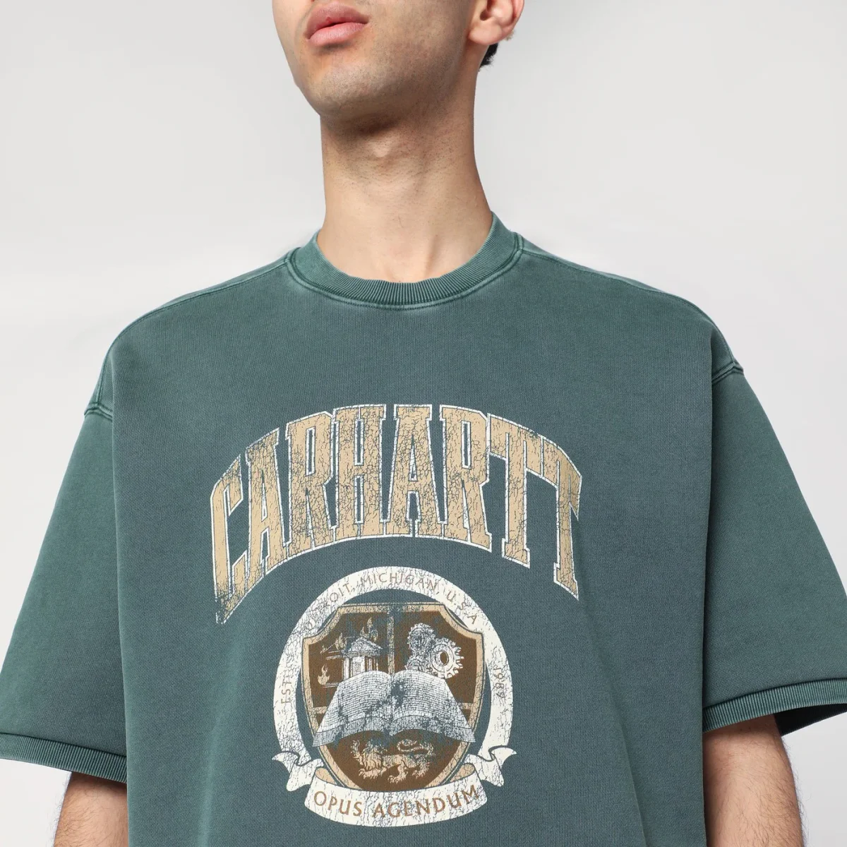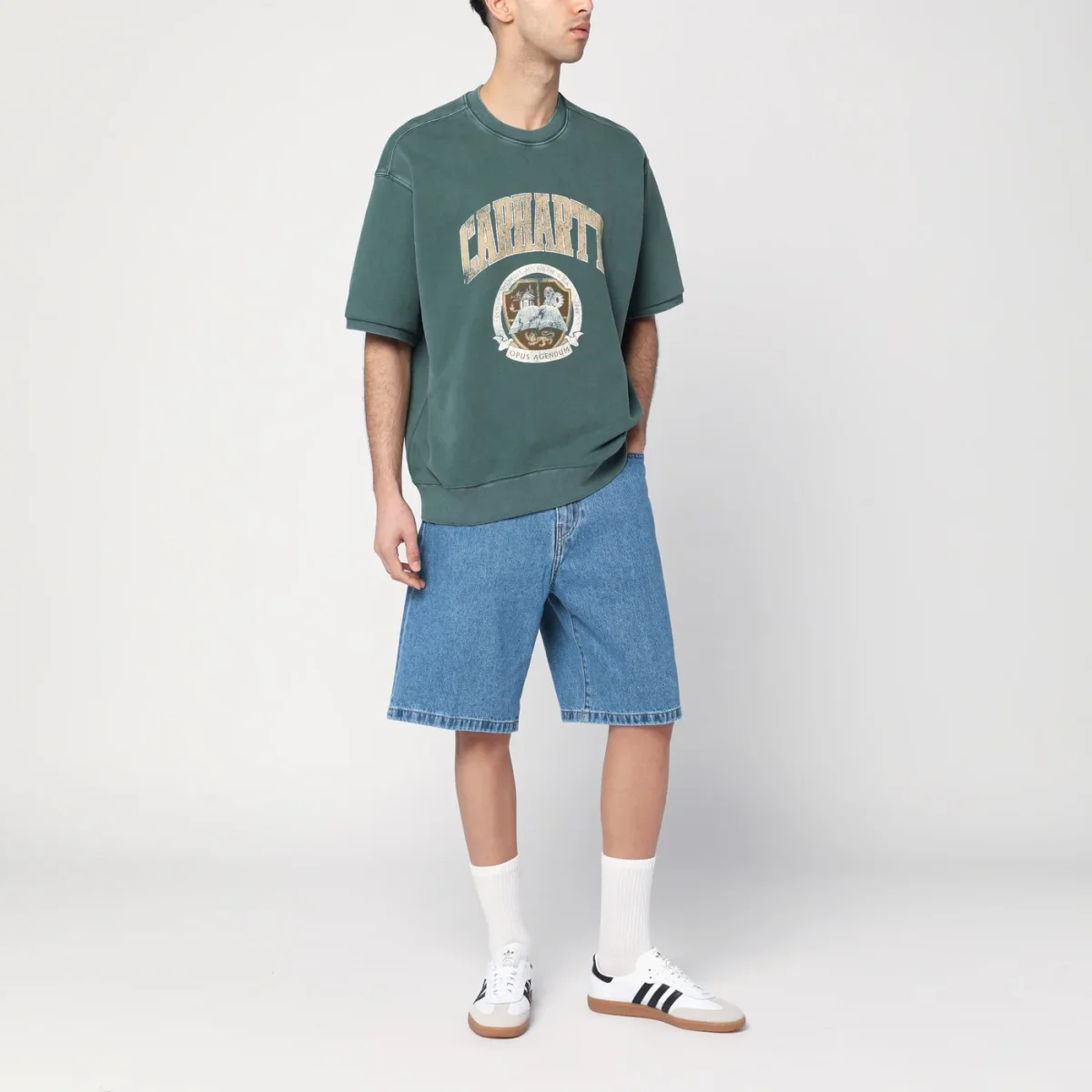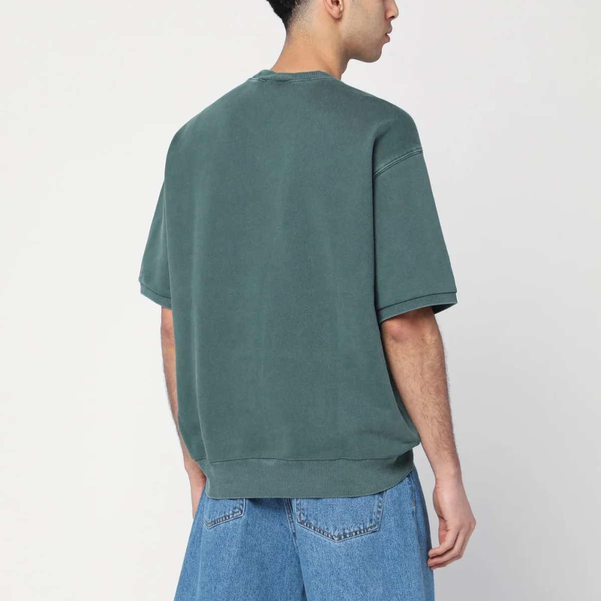 Felpa girocollo di Carhartt WIP in pesante jersey di cotone verde scura, caratterizzata da vestibilità ampia, stampa logo sul petto, manica corta e bordi a costine.