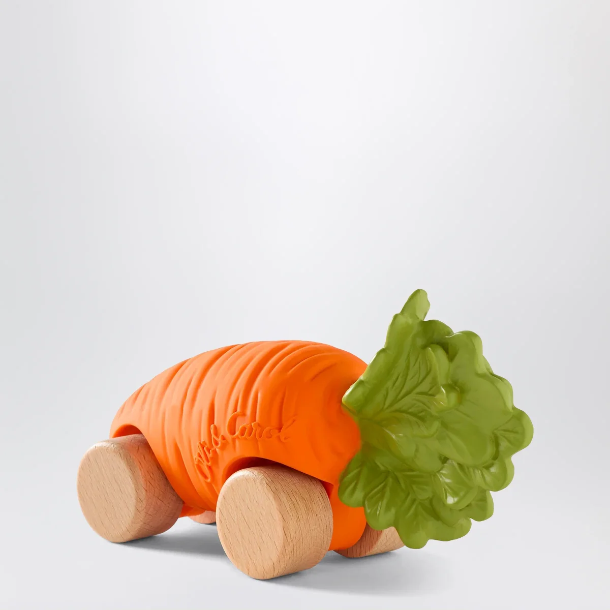 Macchinina giocattolo a forma di carota di Oli&Carol in gomma naturale e legno certificato FSC