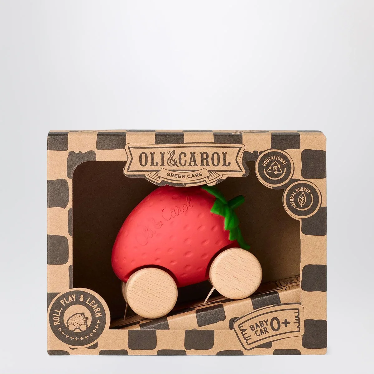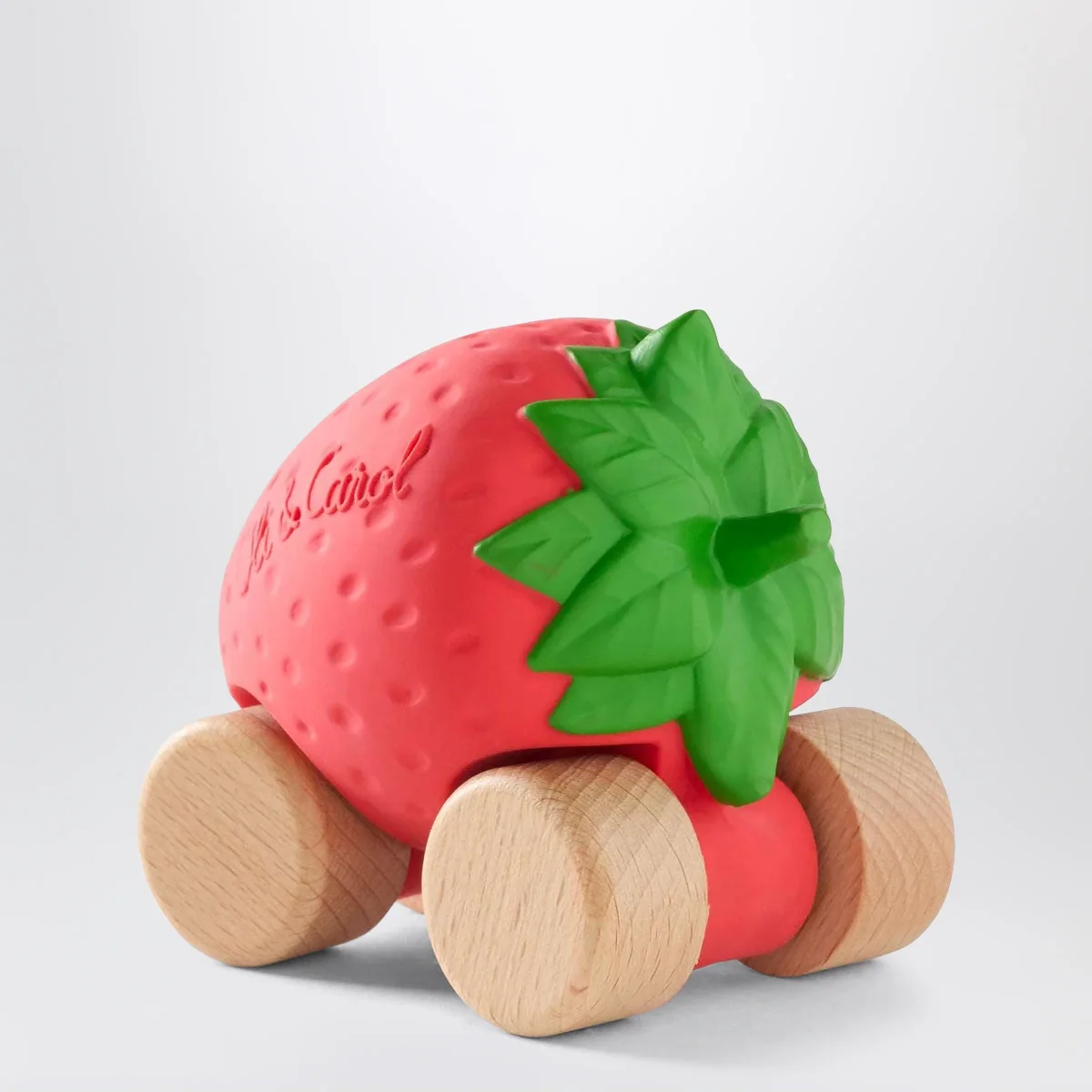 Macchinina giocattolo a forma di fragola di Oli&Carol in gomma naturale e legno certificato FSC