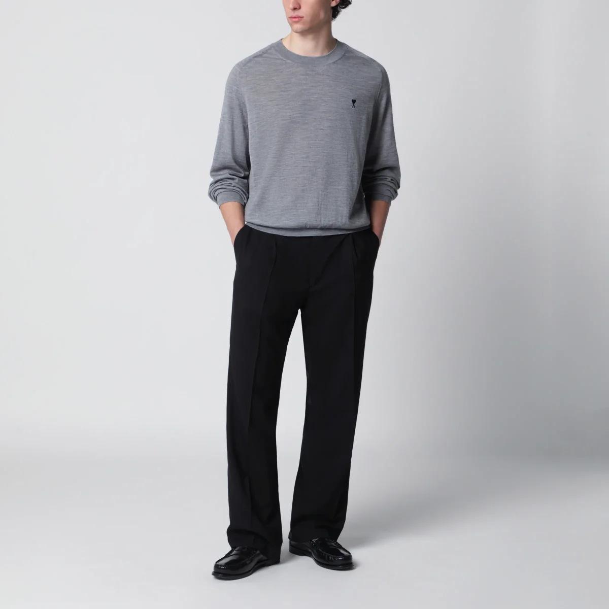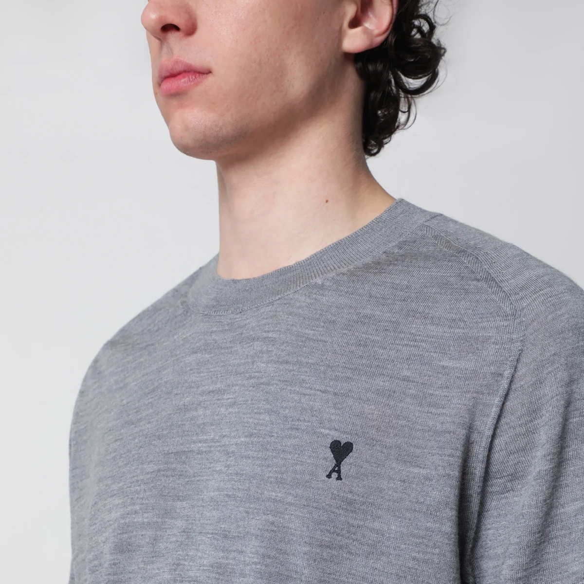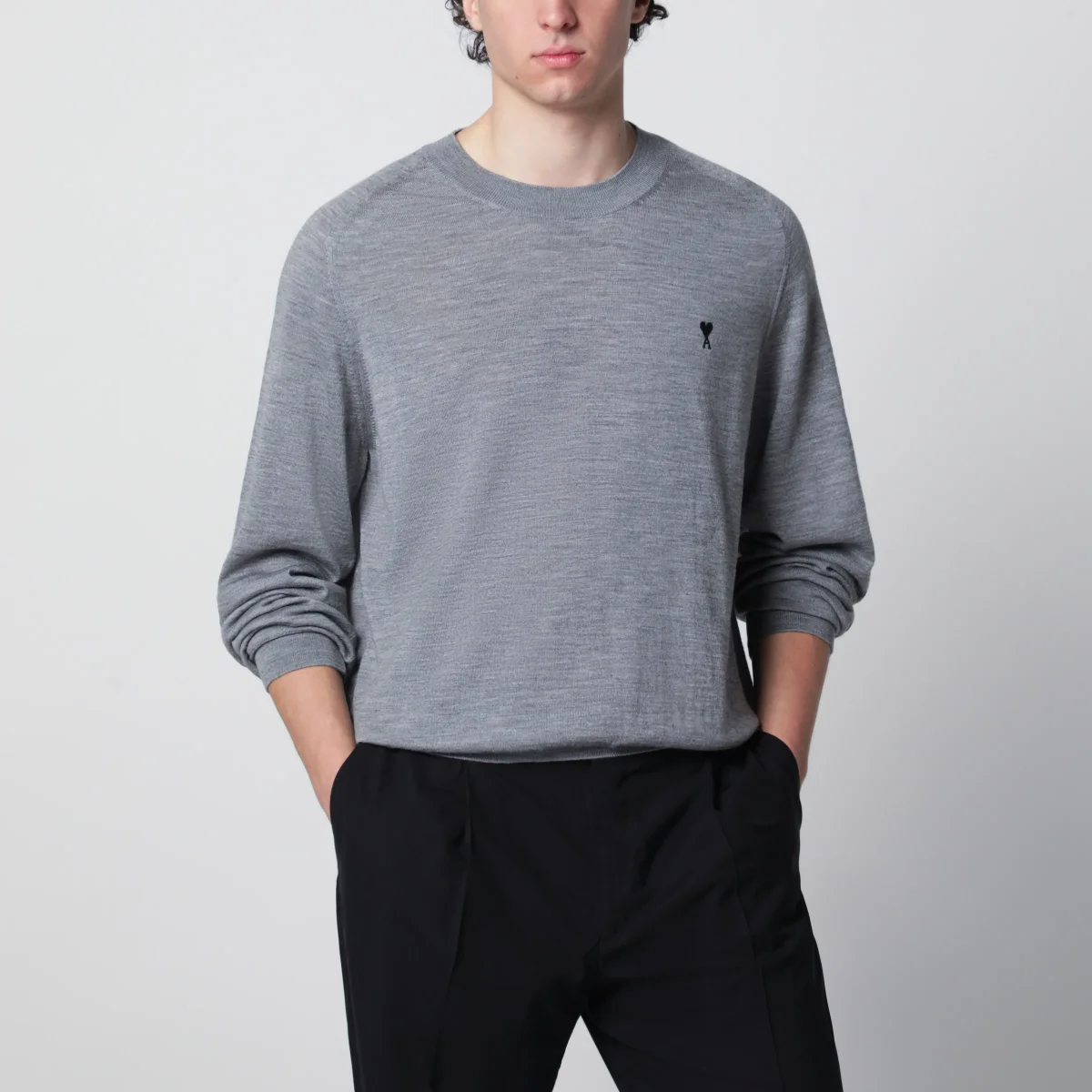 Maglia girocollo di Ami Paris in lana merino• Colore: Heather Grey/Black• Bordi a costine• Maniche lunghe• Ricamo Ami de Coeur sul petto a contrasto