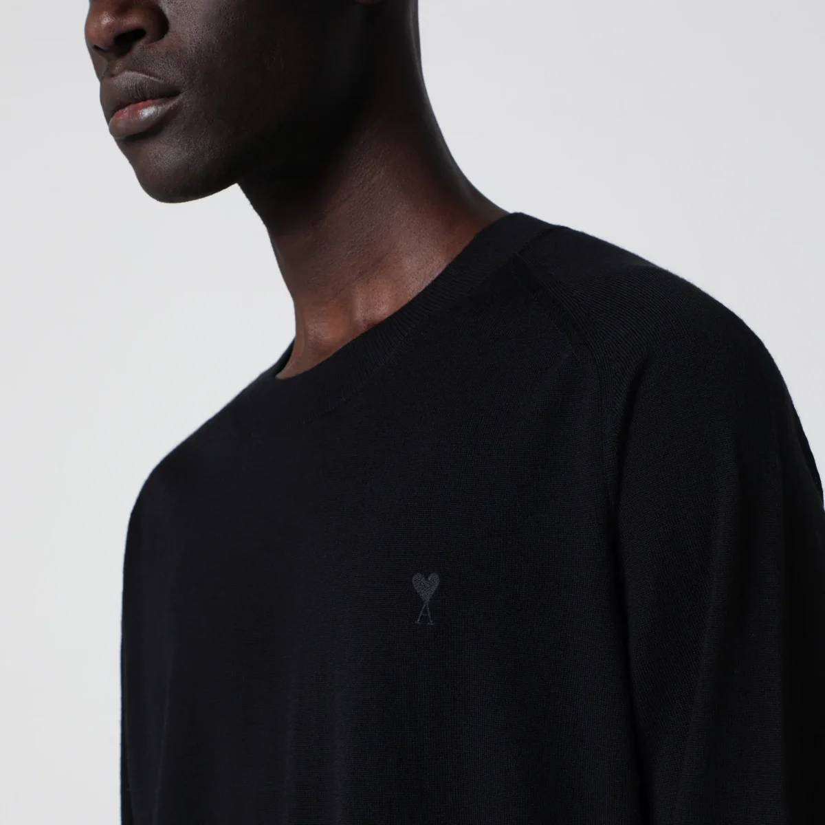 Maglia girocollo di Ami Paris in lana merino• Colore: Nero• Bordi a costine• Maniche lunghe• Ricamo Ami de Coeur sul petto a contrasto