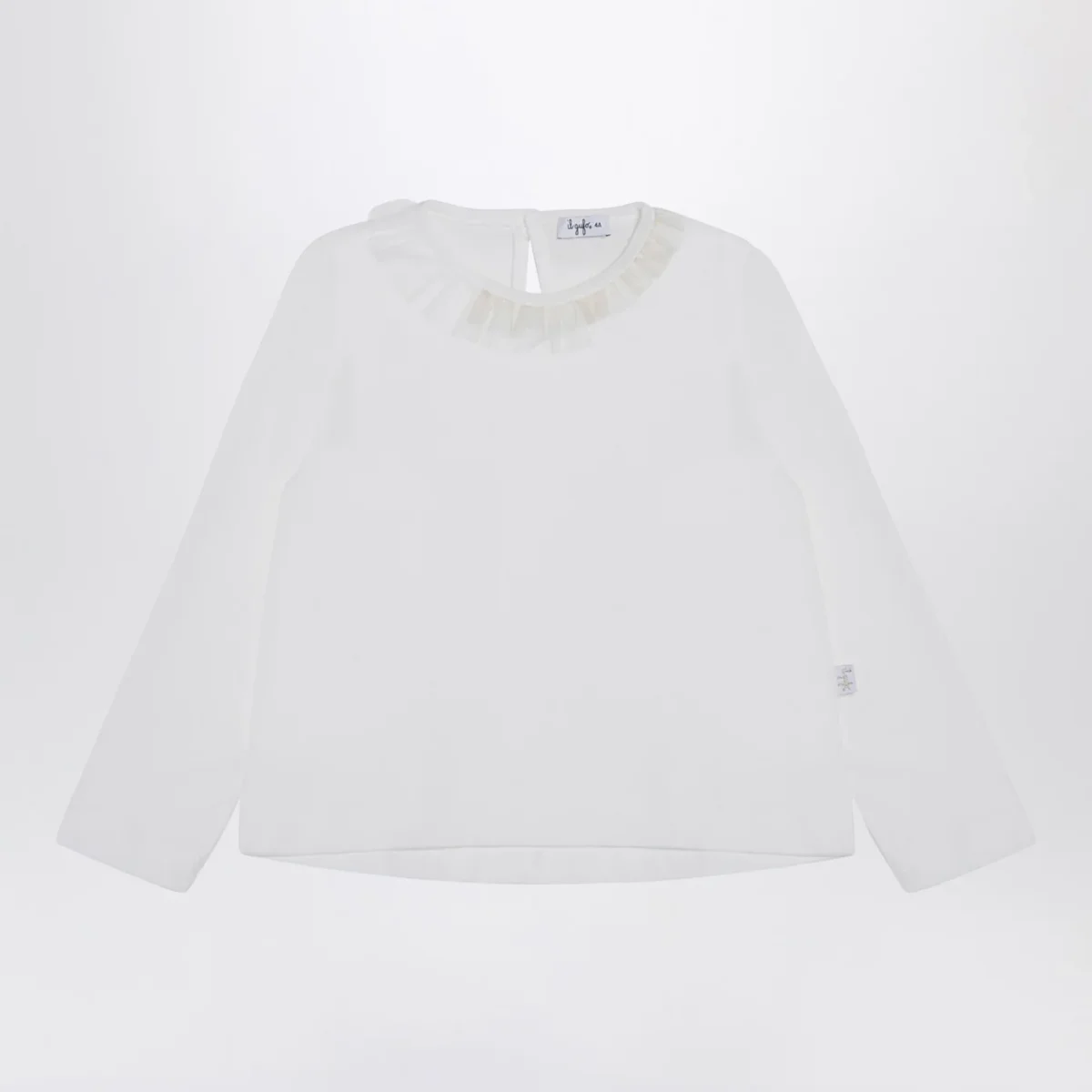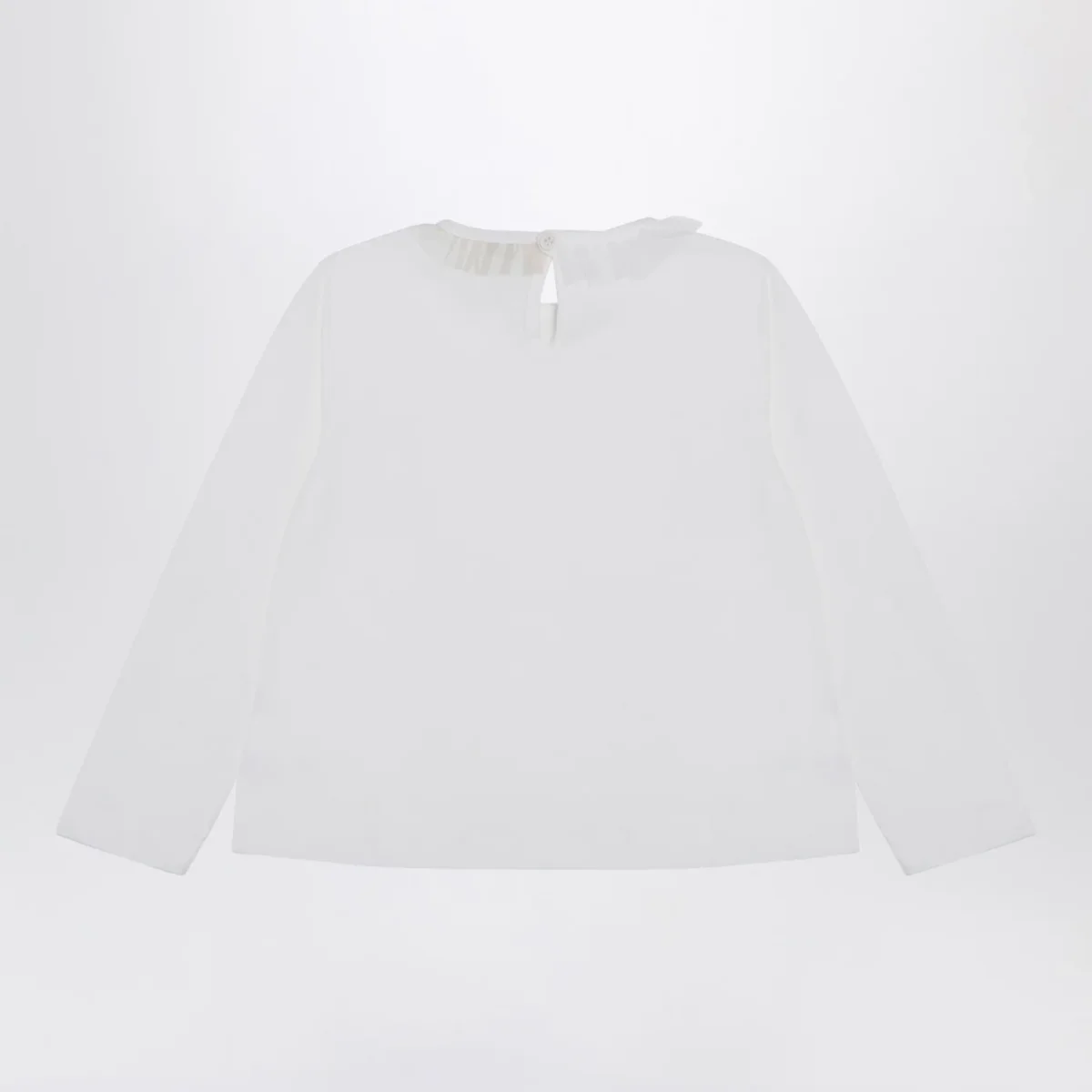 Maglia de Il Gufo in cotone bianca, caratterizzata da manica lunga, girocollo con dettaglio con volant e piccolo patch logo laterale.