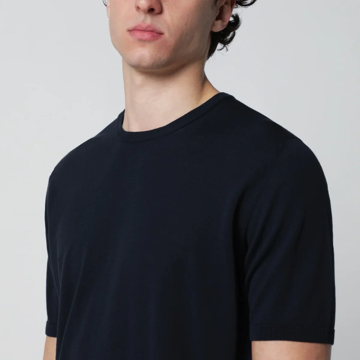 Maglia girocollo di Roberto Collina in cotone blu navy, caratterizzata da maniche corte e bordi a costine.
