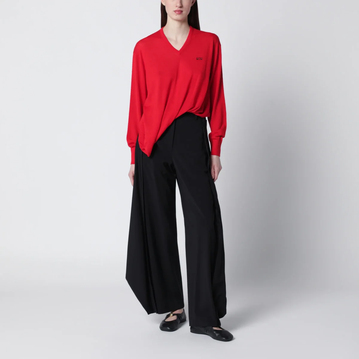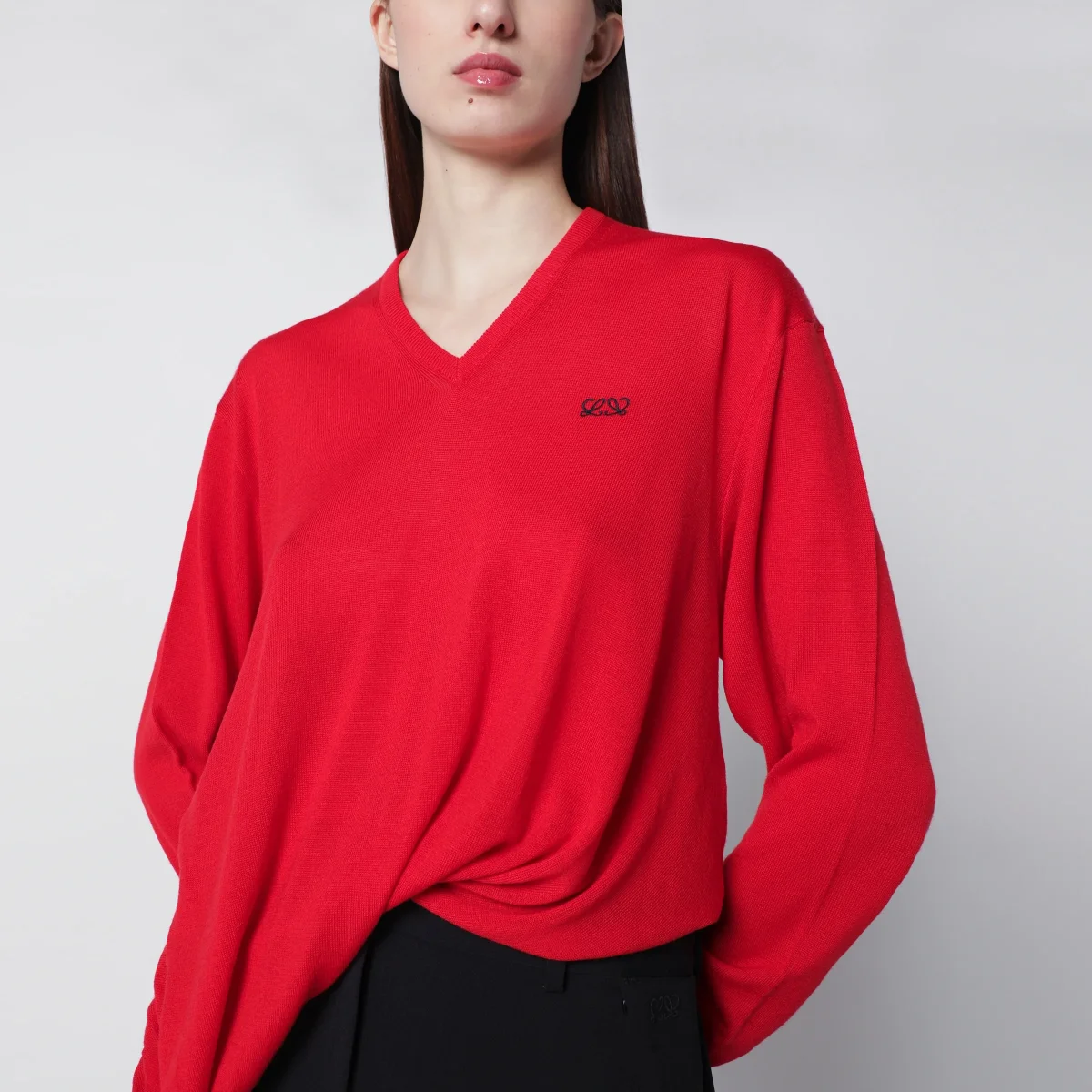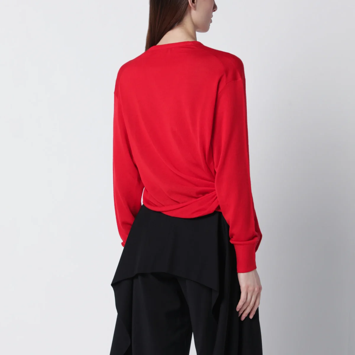 Maglia di Loewe in leggera lana merino• Colore: Rosso• Silhouette asimmetrica• Costruzione ritorta con drappeggio• Vestibilità rilassata, lunghezza standard• Scollo a V• Ricamo Double L sul petto
