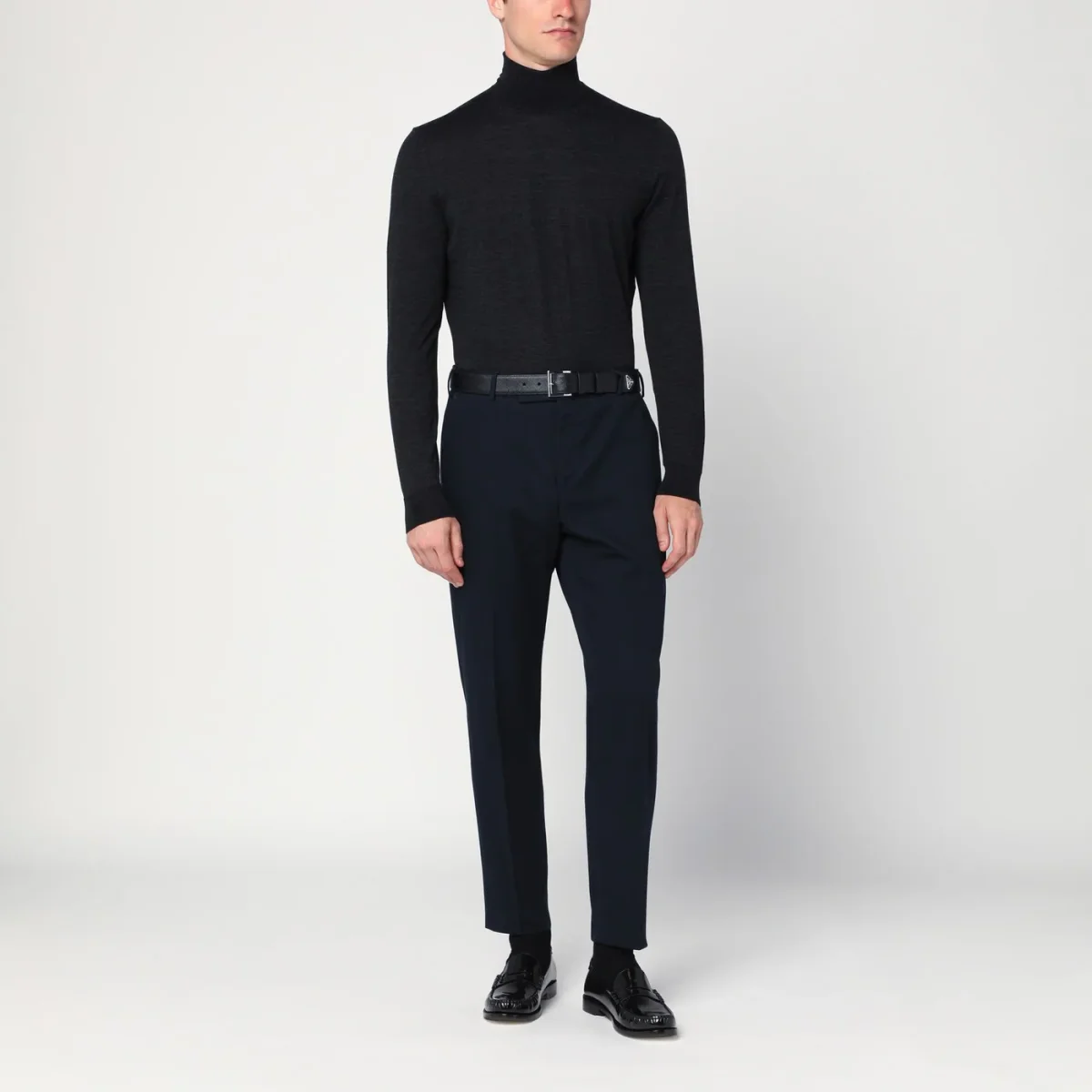 Maglia dolcevita color carbone in lana