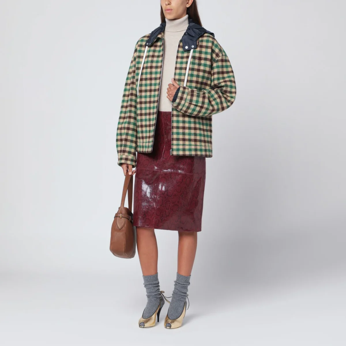 Abito in seta jacquard verde con Incrocio GG