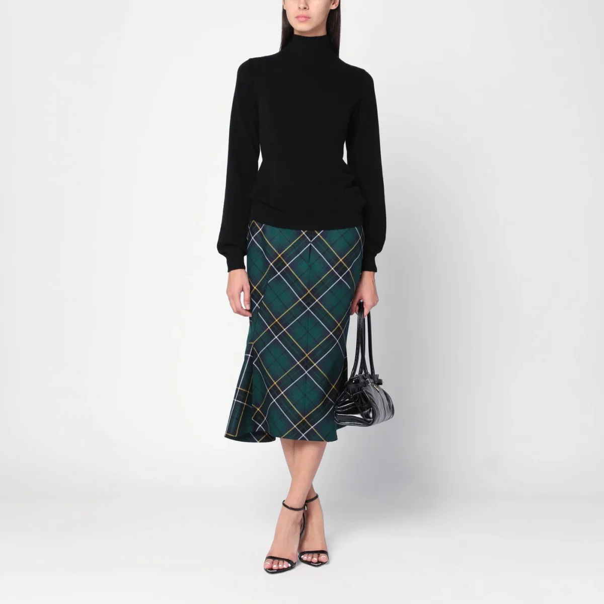Maglia dolcevita nera con dettagli incrociati