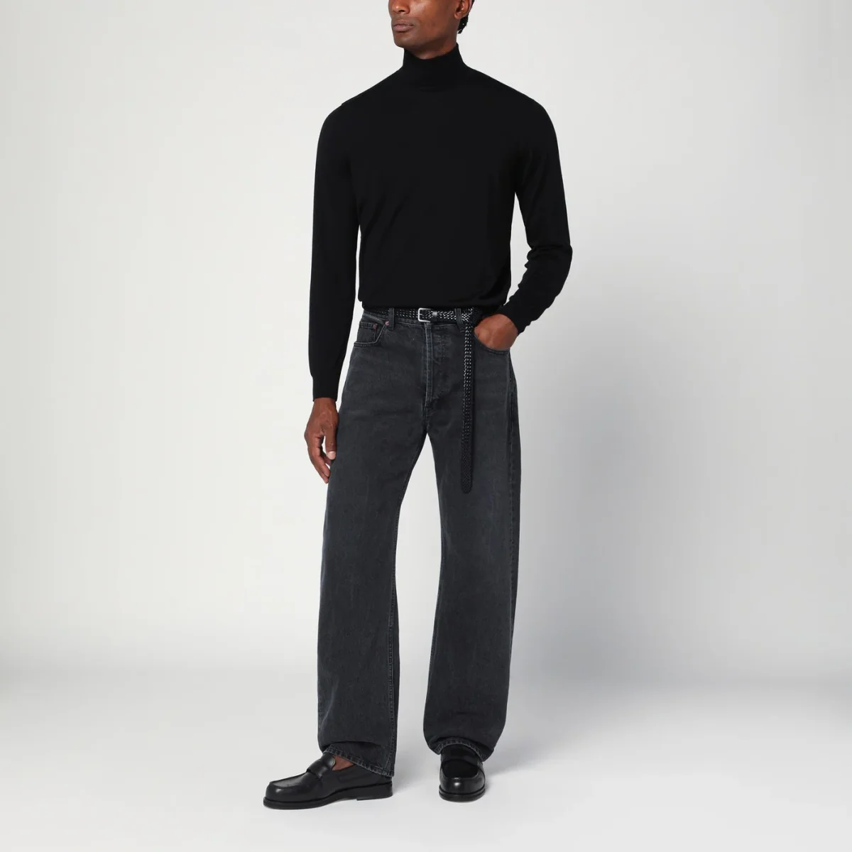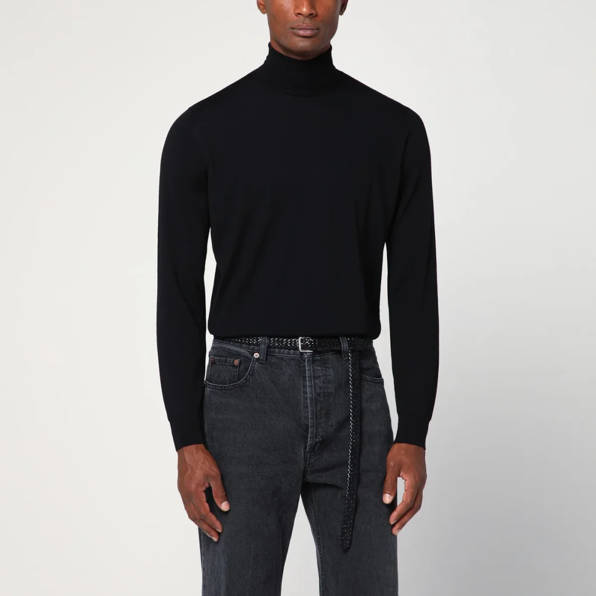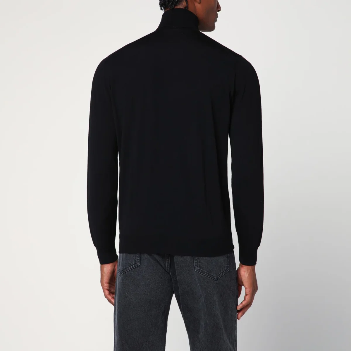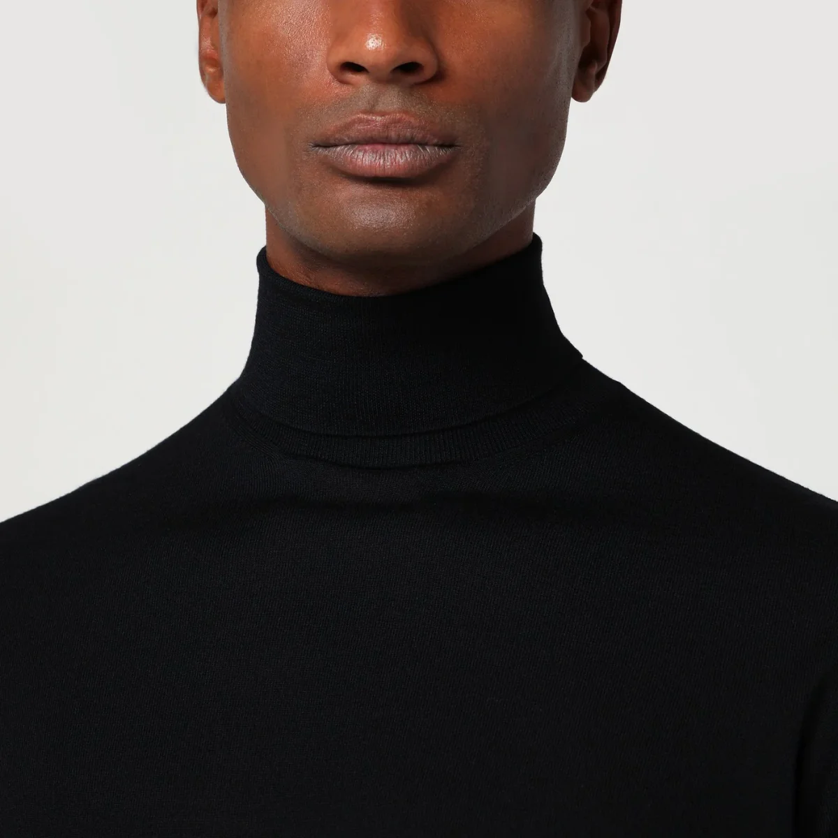 Maglia di Drumohr in lana nera, caratterizzata da maniche lunghe, collo alto e bordi a costine.