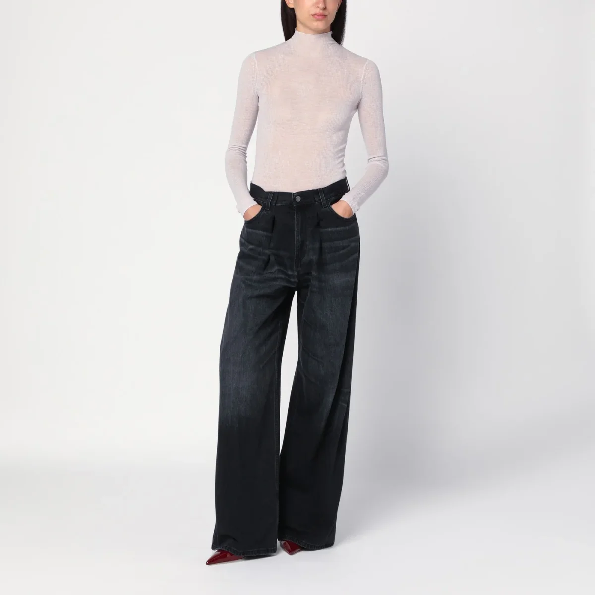 Maglia dolcevita semitrasparente avorio