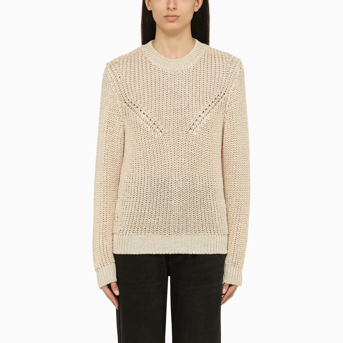 Maglia girocollo di Isabel Marant in poliestere riciclato color écru, caratterizzata da manica lunga, design traforato e collo, polsi e orlo a coste.