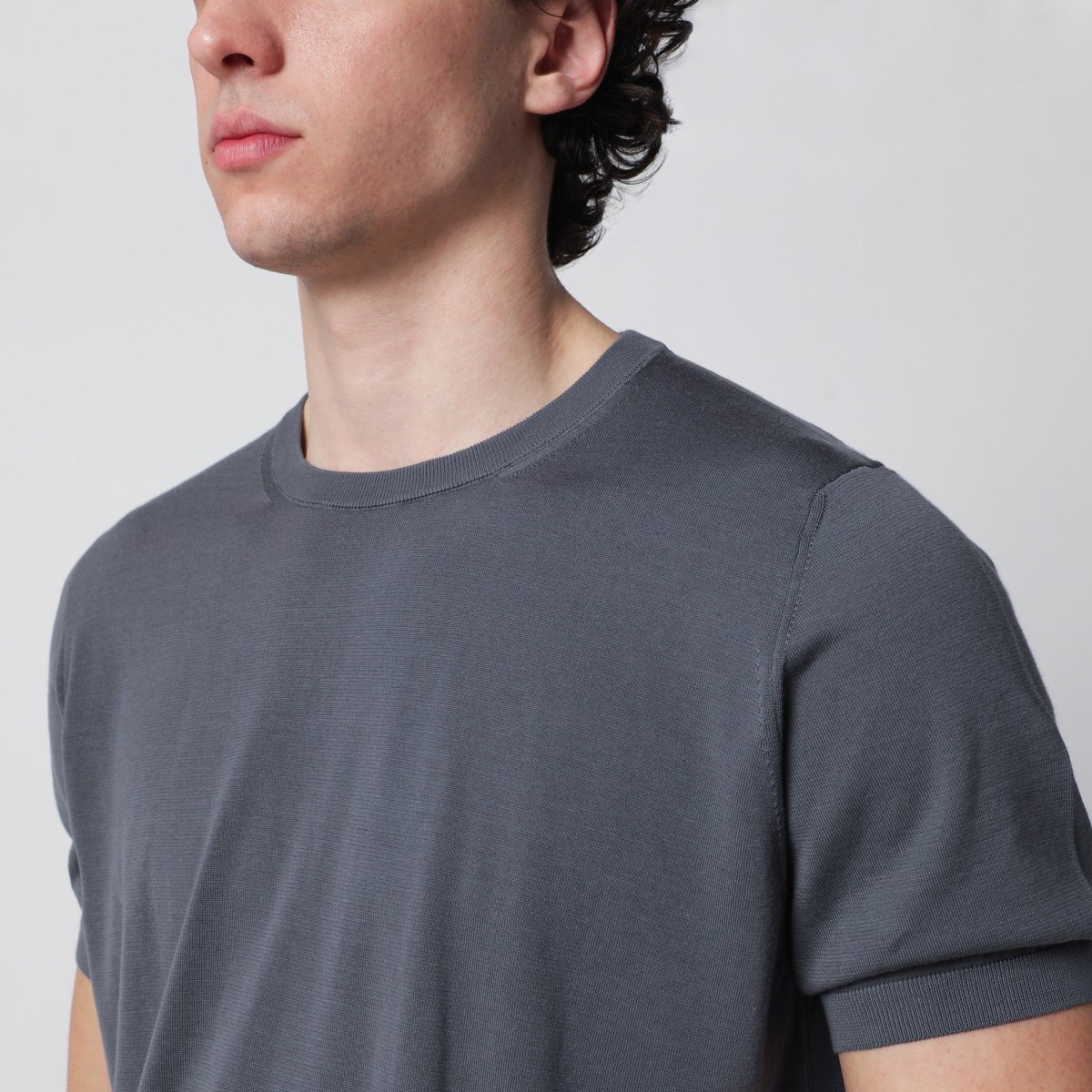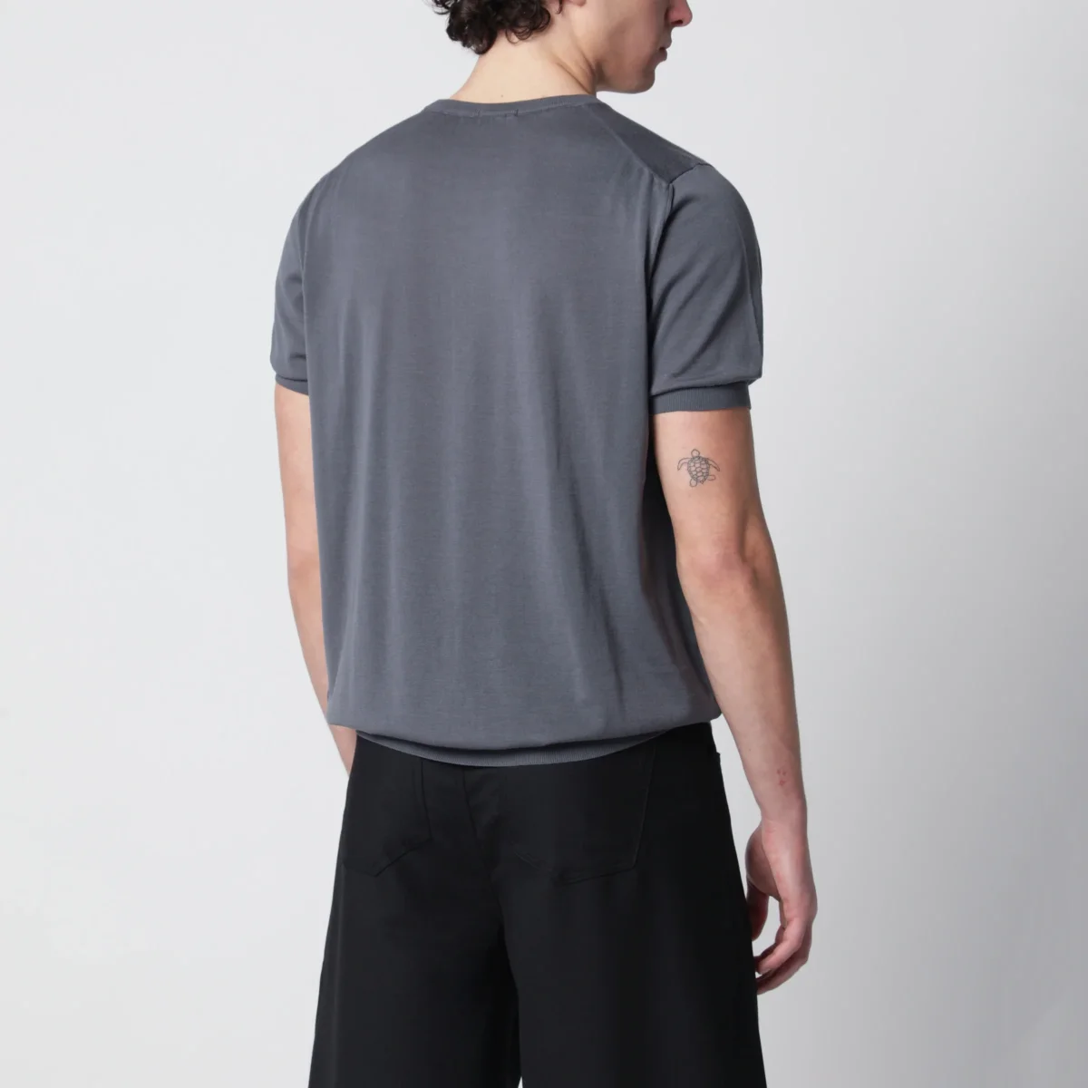 Maglia girocollo di Drumohr in cotone• Colore: Grigio• Maniche corte• Bordi a costine