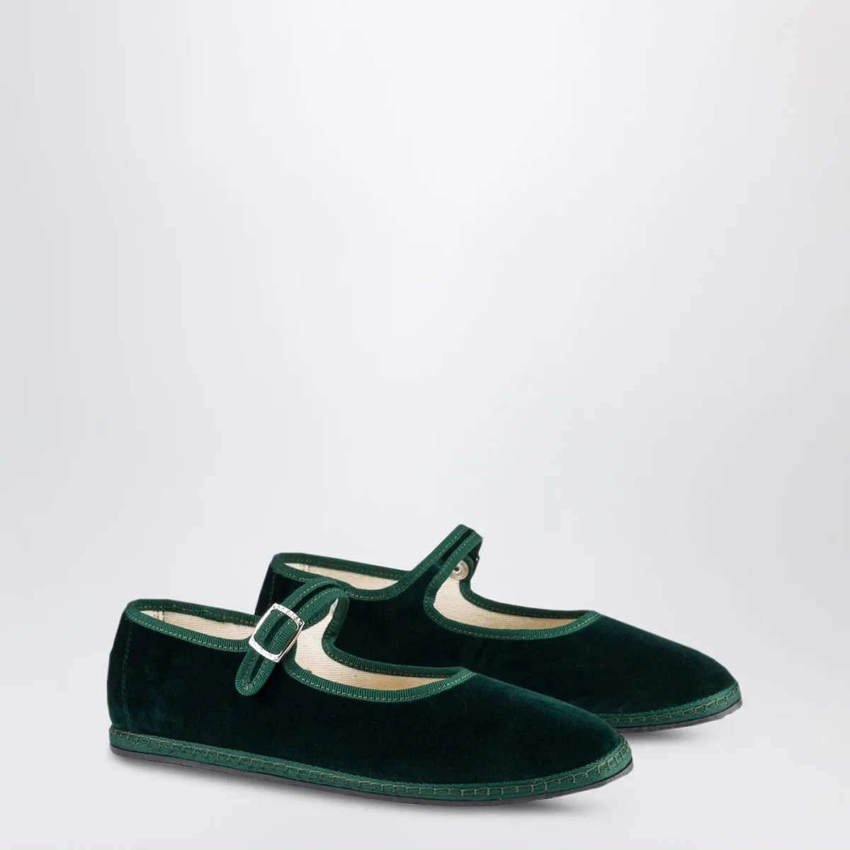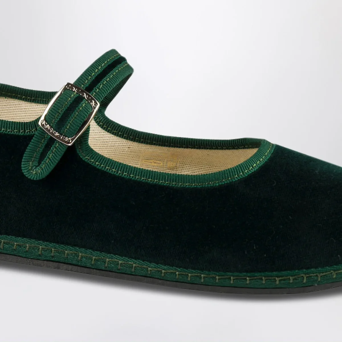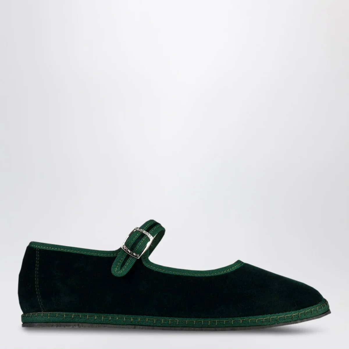 Mary Jane di Vibi Venezia in velluto verde con cinturino regolabile con fibbia e suola in gomma.