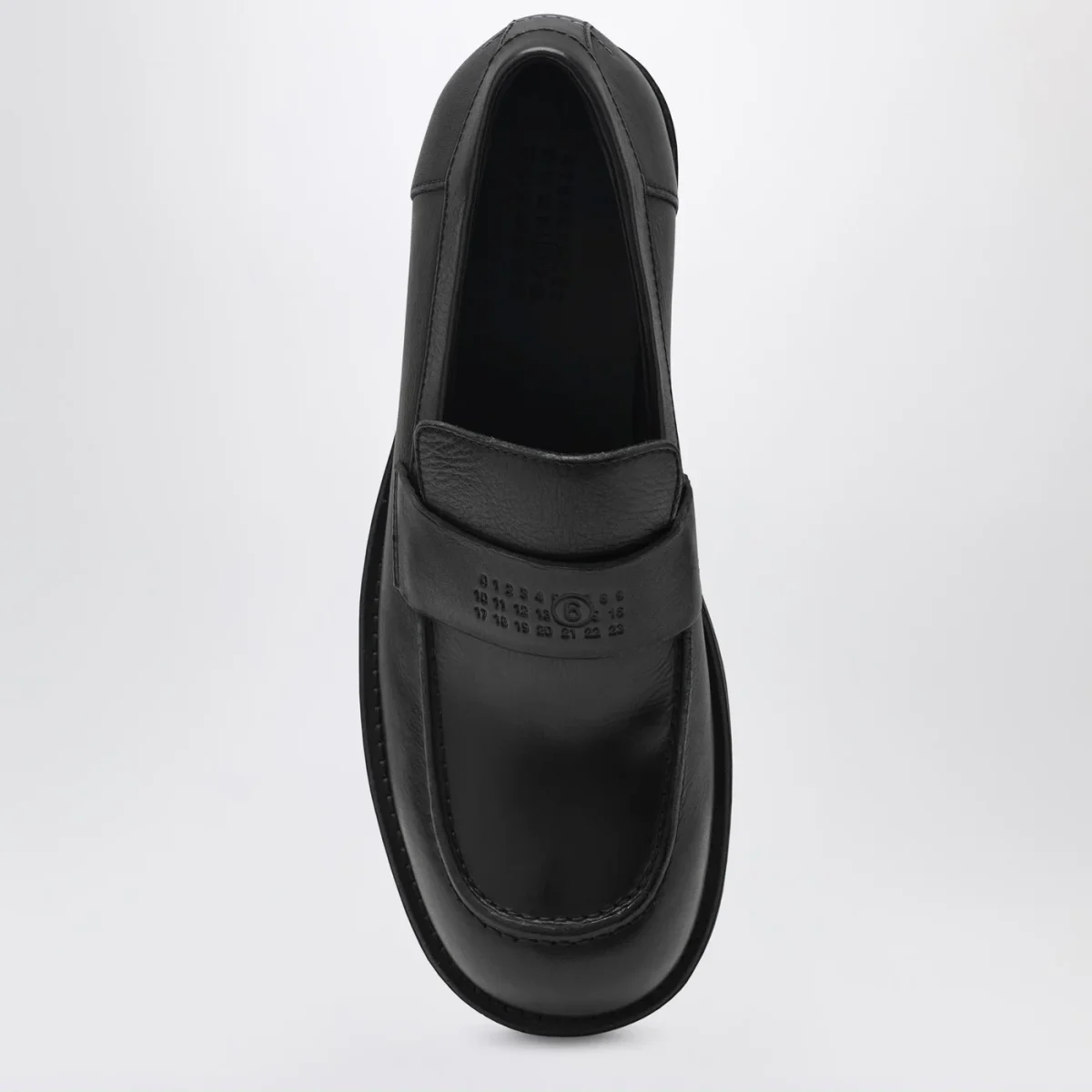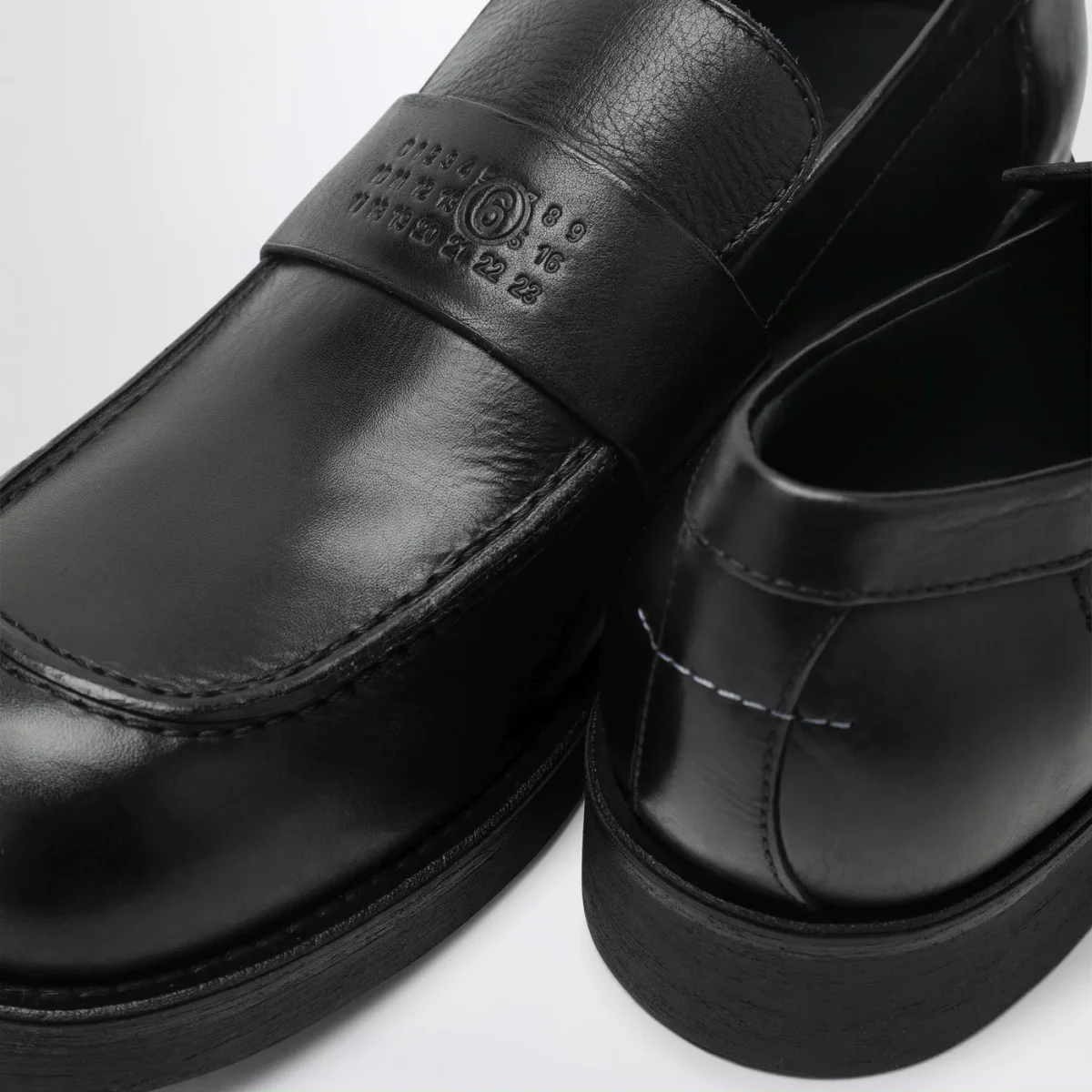 Mocassini biker di MM6 Maison Margiela in pelle di vitello liscia nera• dettaglio con logo inciso sulla fascia• cucitura bianca sulla parte posteriore