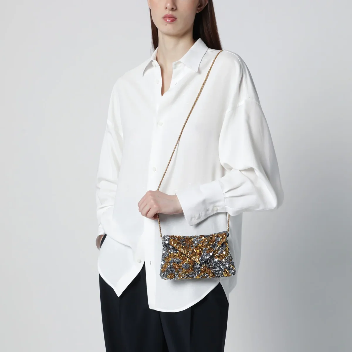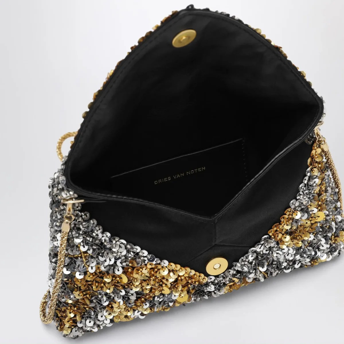 Pochette di Dries Van Noten con paillettes argento e dorate