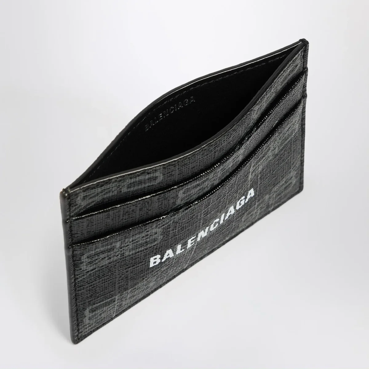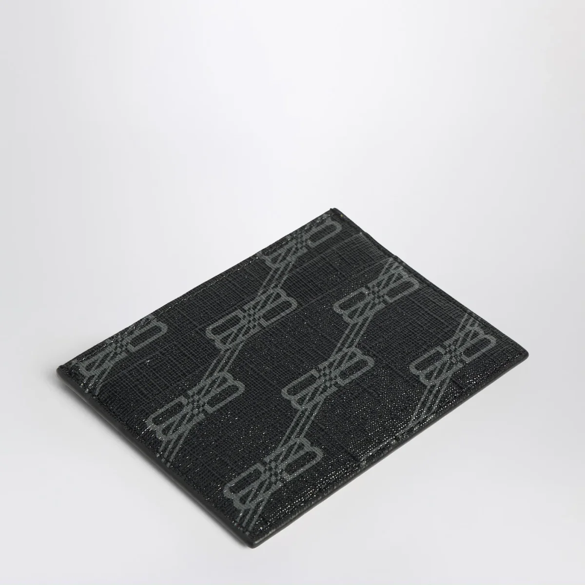 Portacarte di Balenciaga in tela rivestita con BB Monogram nero e grigio, caratterizzato da logo stampato davanti, quattro scomparti per carte di credito e una tasca per le banconote.