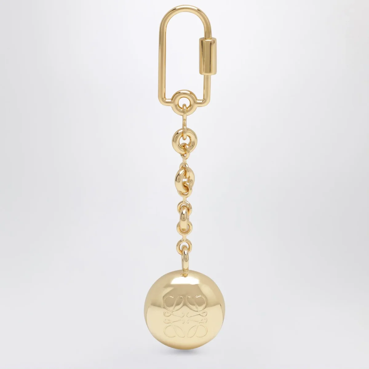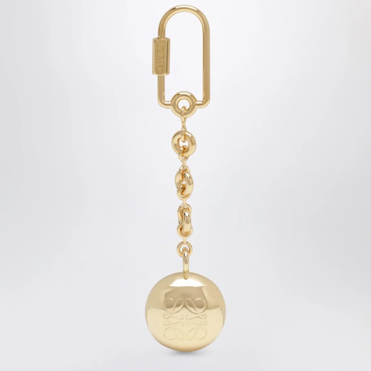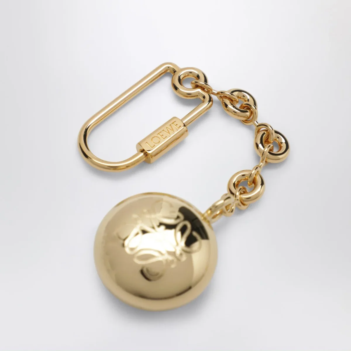 Portachiavi di Loewe in ottone dorato•ciondolo con Anagram Pebble• catena Donut• chiusura a vite