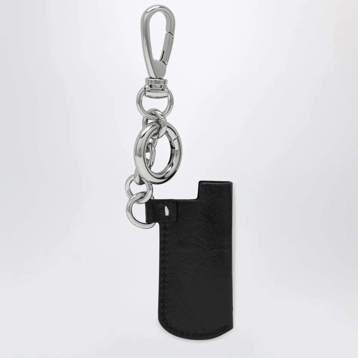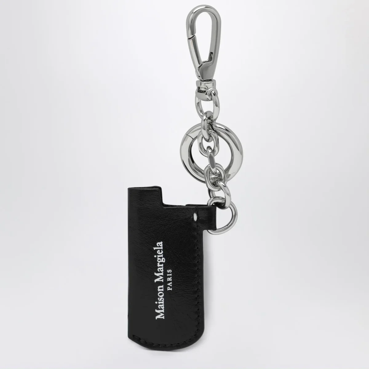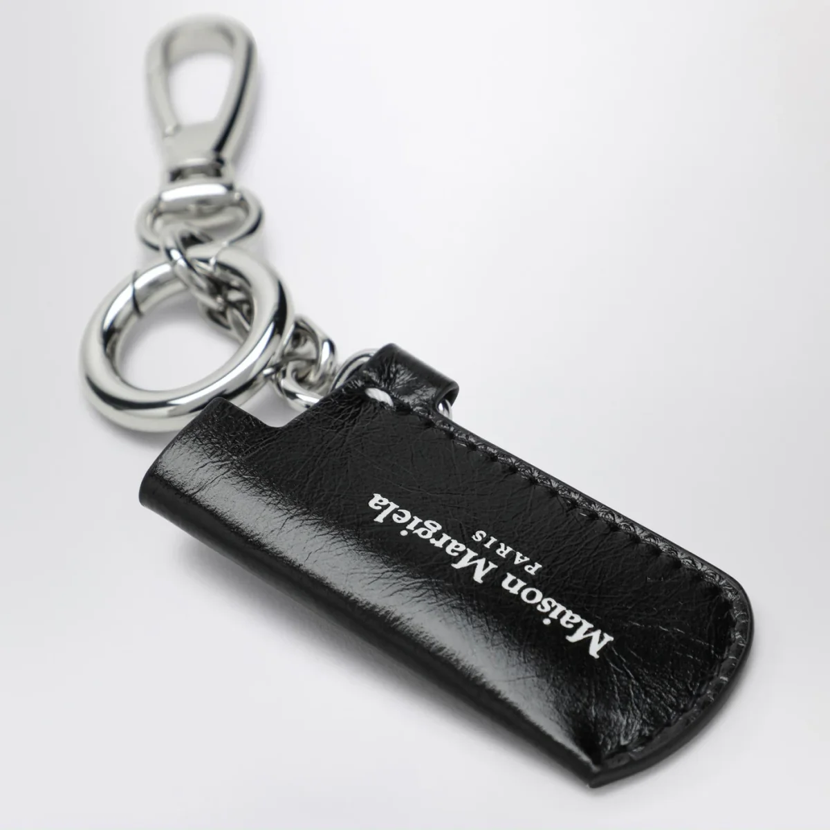 Portachiavi di Maison Margiela in pelle nera•anello e moschettone in anello con finitura argento• etichetta in pelle con logo