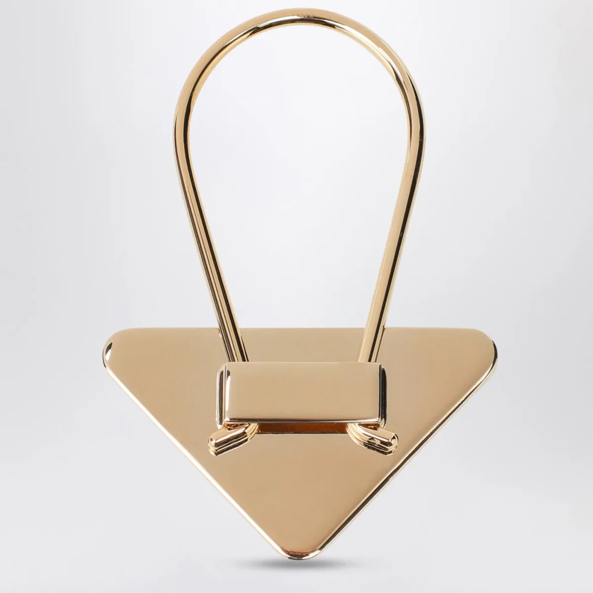 Portachiavi di Prada in metallo smaltato dorato e nero a forma triangolare con logo lettering