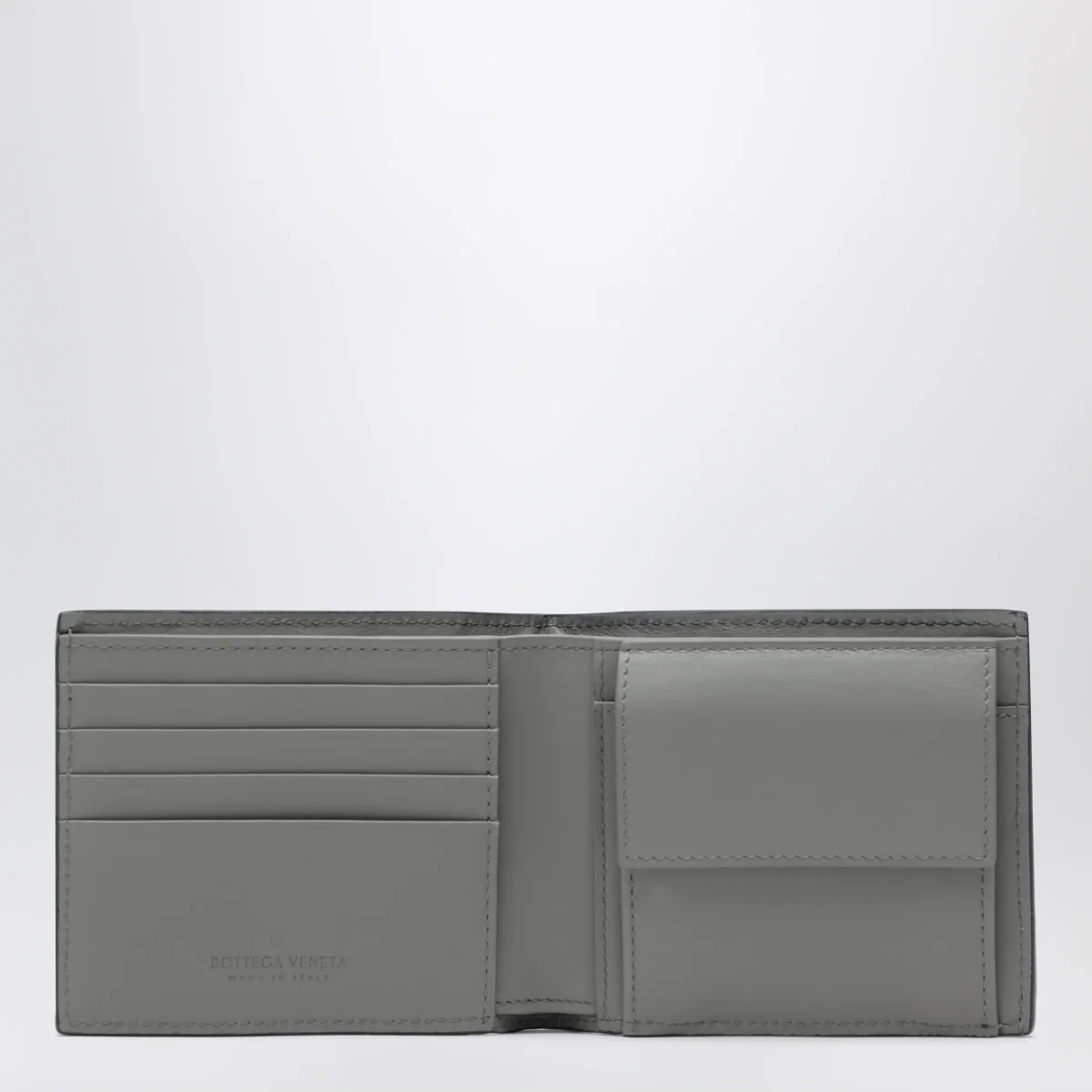 Portafoglio bi-fold di Bottega Veneta in pelle di vitello con lavorazione Intrecciato• Colore: Midnight/Basalt• Struttura bicolore con interno a contrasto• Quattro slot per carte• Due scomparti per banconote• Due tasche extra• Portamonete integrato• Accessori metallici con finitura argento