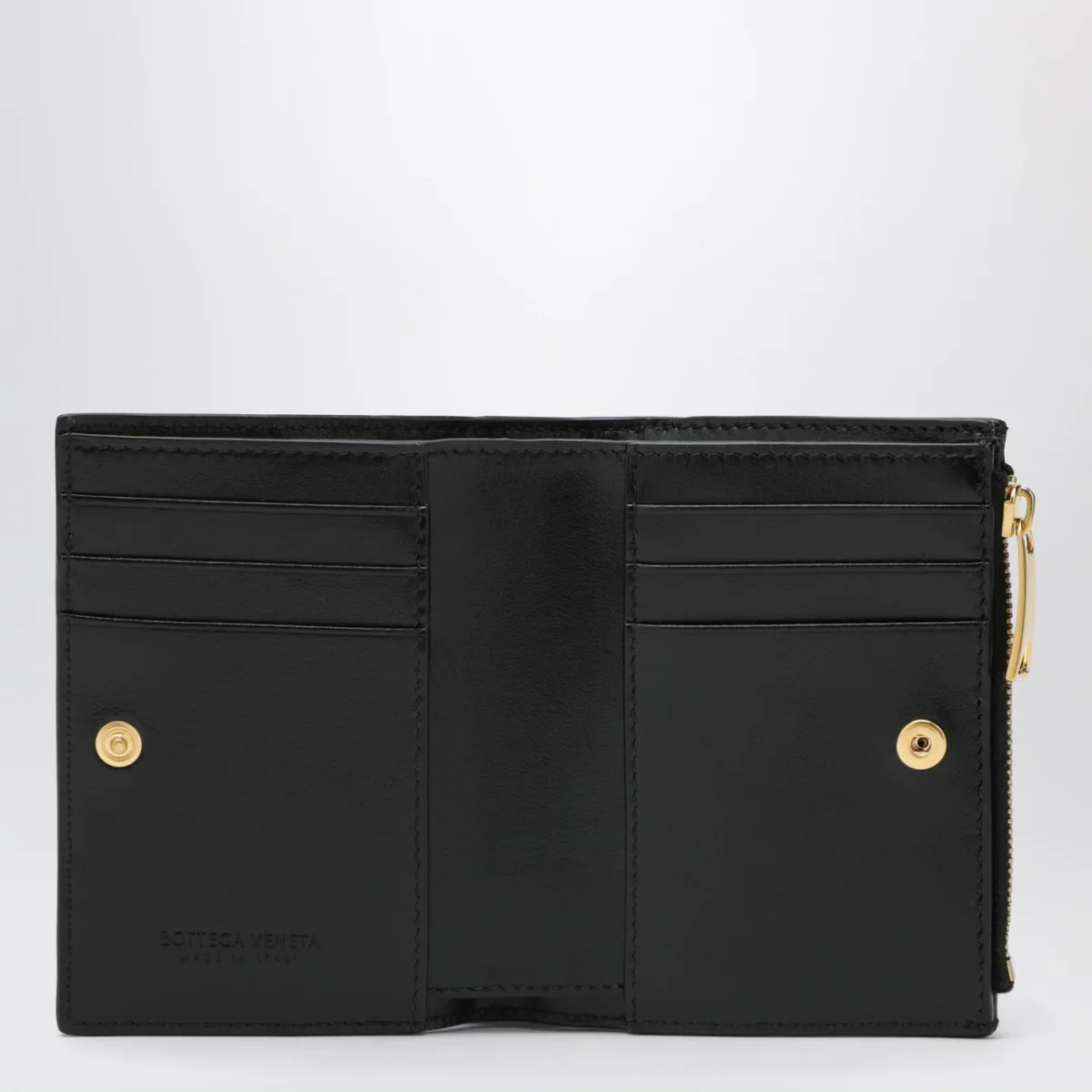 Portafoglio Bi-Fold piccolo di Bottega Veneta in pelle con motivo Intrecciato nero