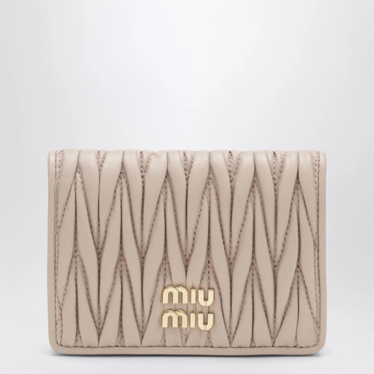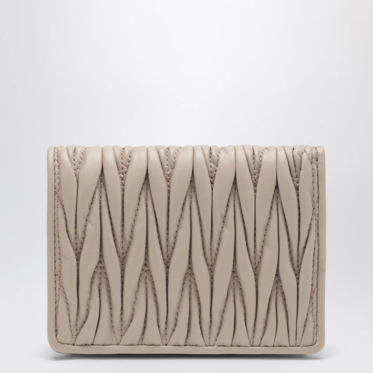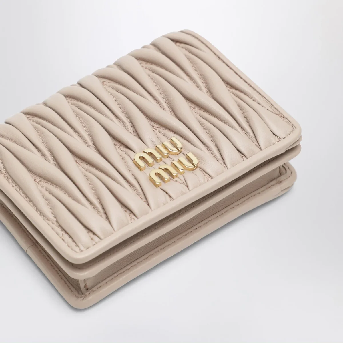 Portafoglio compatto di Miu Miu in nappa matelassé cipria