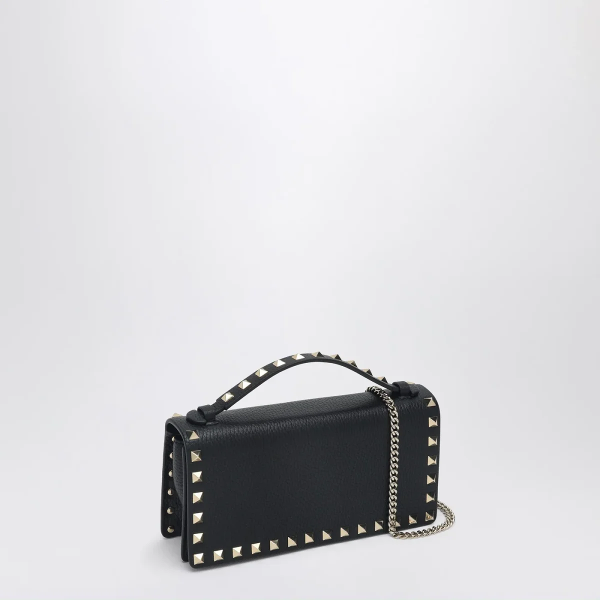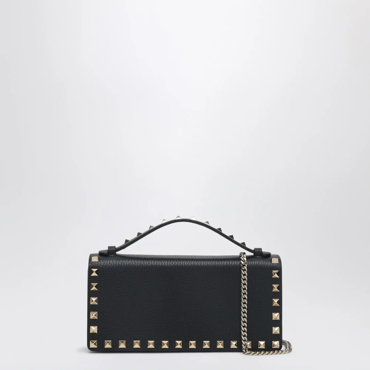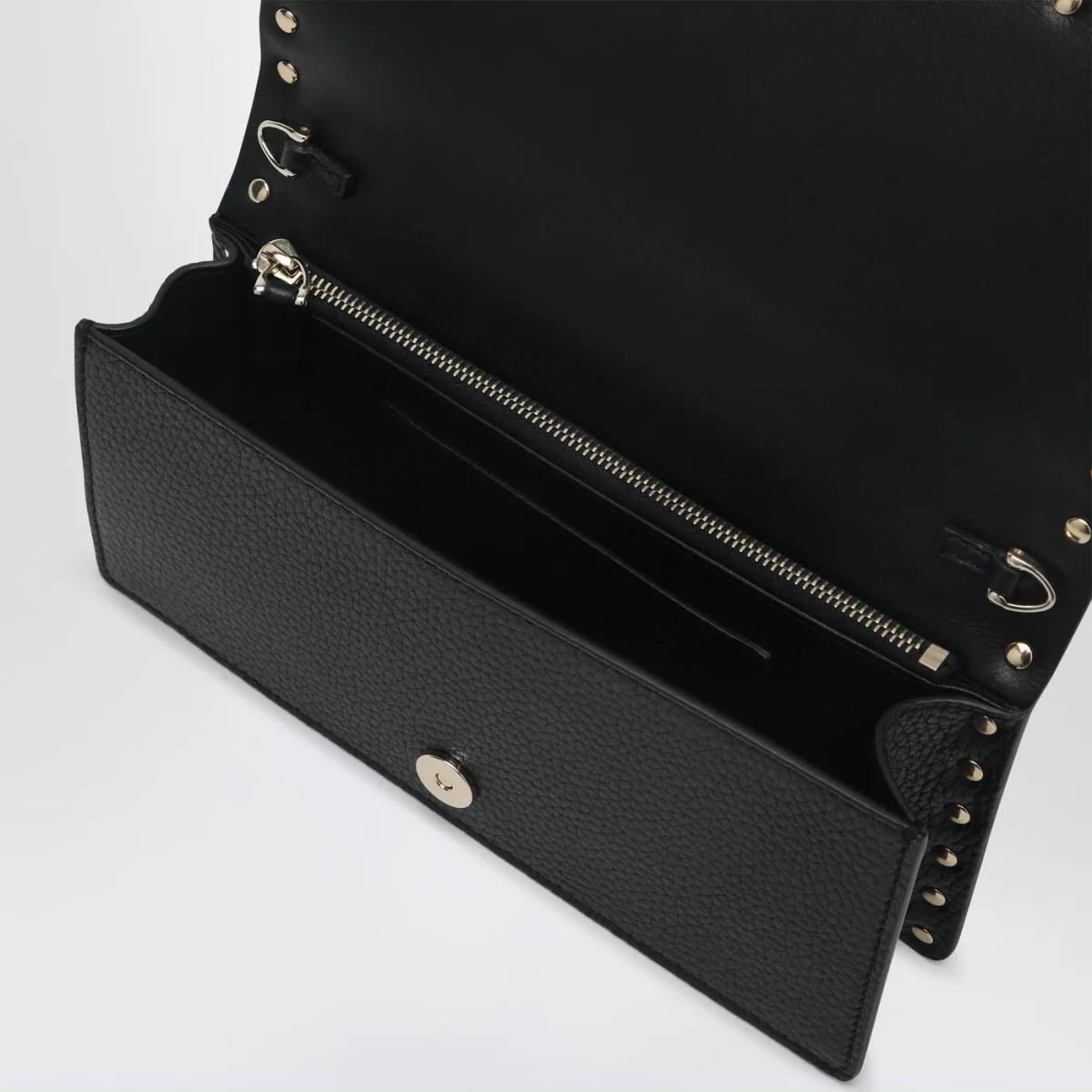 Portafoglio di Valentino Garavani in pelle nero• decorazione di borchie all over• tracolla a catena rimovibile• manico superiore• patta frontale con chiusura magnetica• uno scomparto interno• una tasca interna con zip