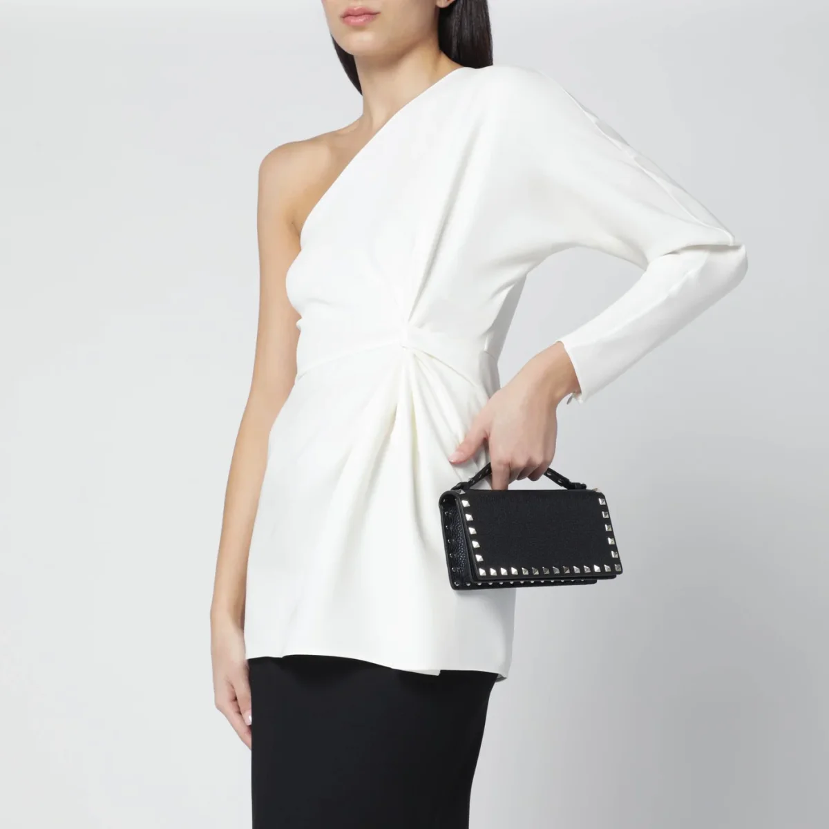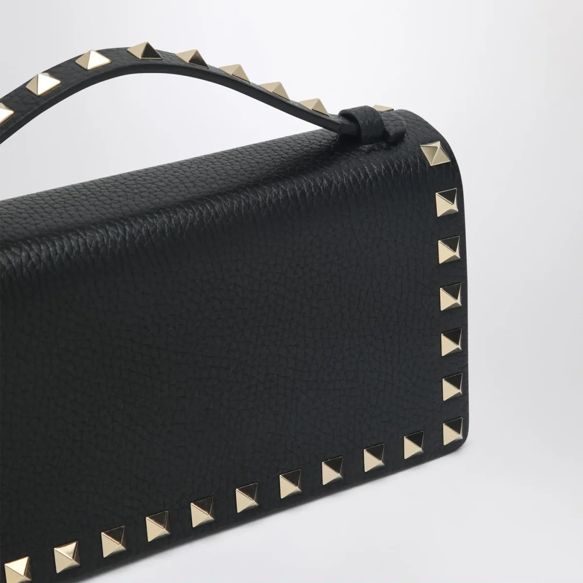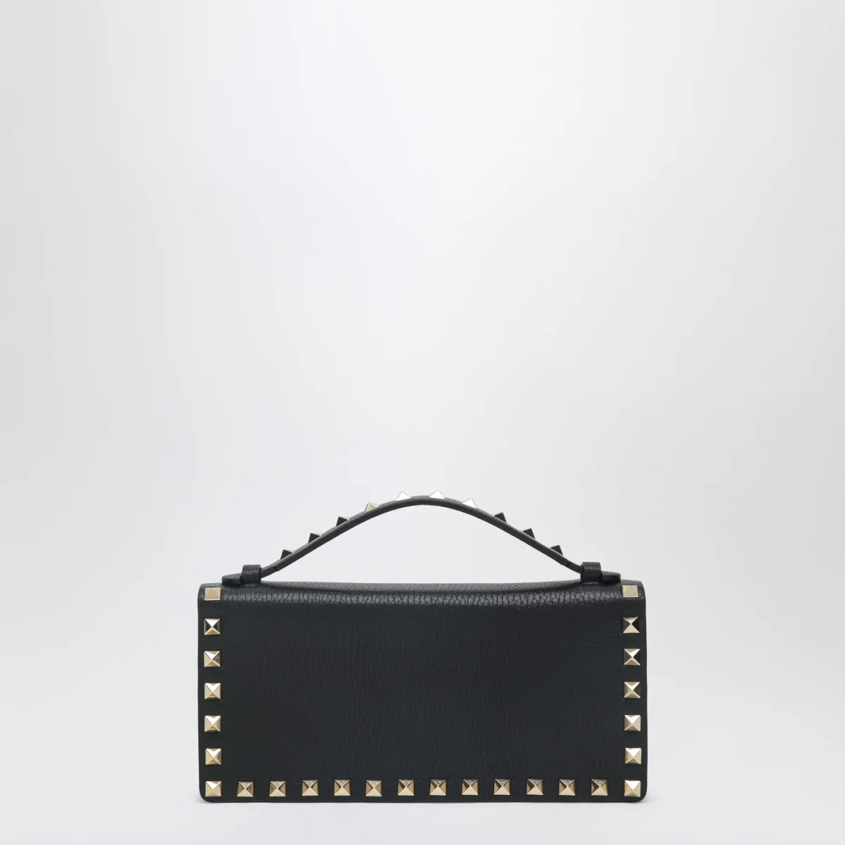 Portafoglio di Valentino Garavani in pelle nero• decorazione di borchie all over• tracolla a catena rimovibile• manico superiore• patta frontale con chiusura magnetica• uno scomparto interno• una tasca interna con zip