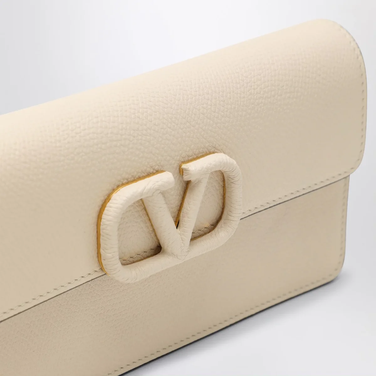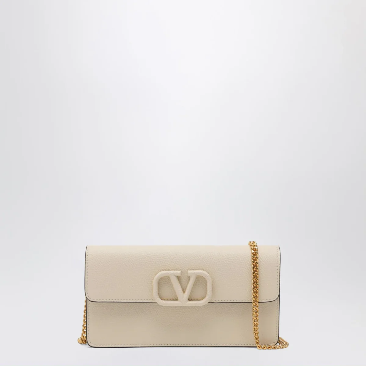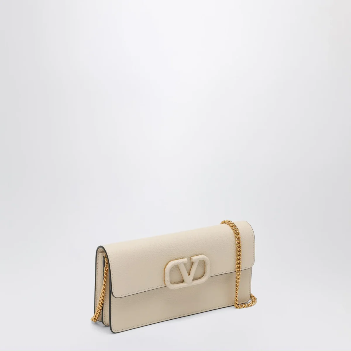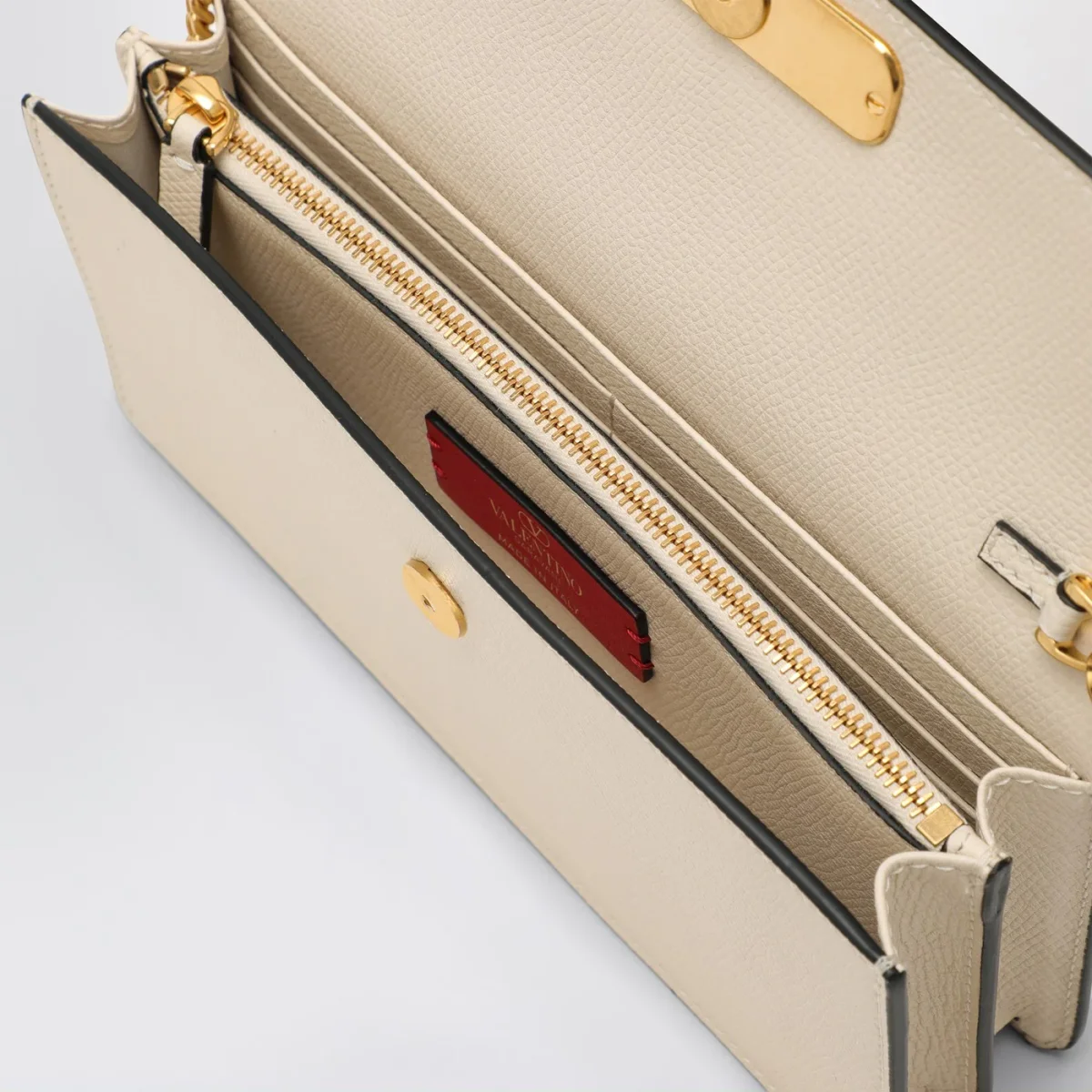 Portafoglio con catena di Valentino Garavani in pelle avorio
