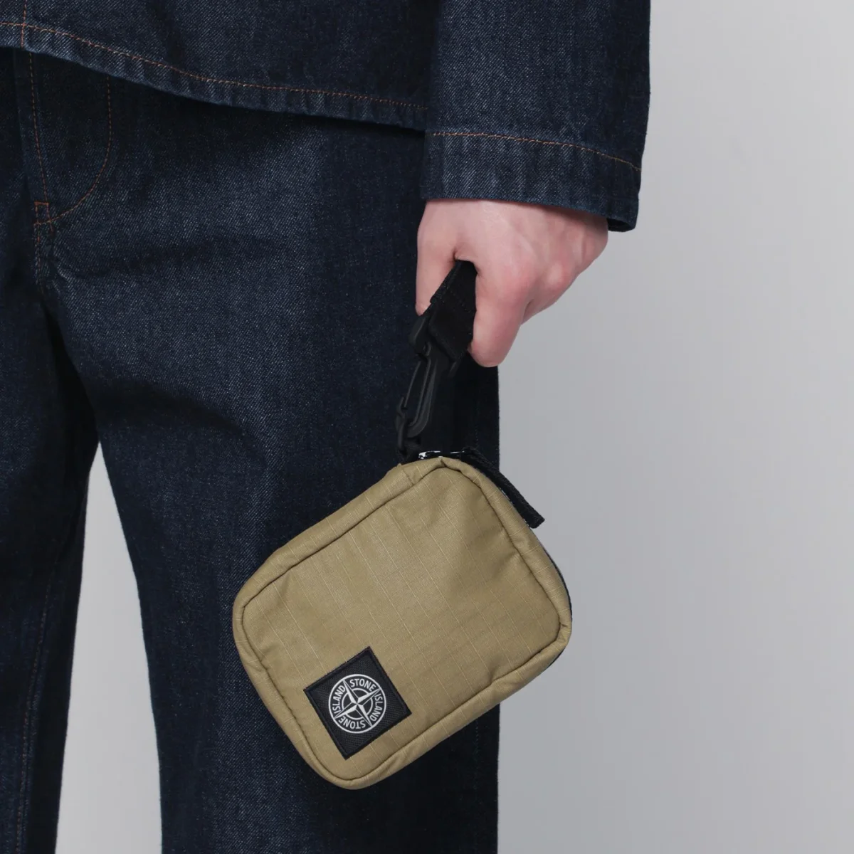 Portafoglio da polso di Stone Island in ripstop di cotone a doppio rivestimento verde militare