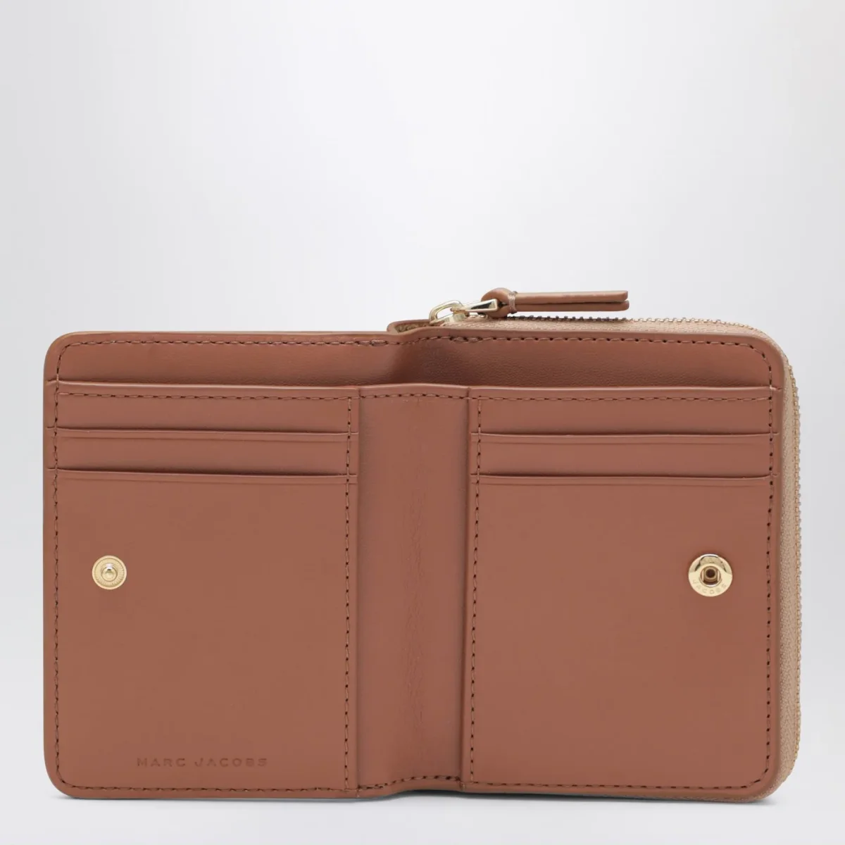 Portafoglio compatto misura mini di Marc Jacobs in pelle pieno fiore color cammello