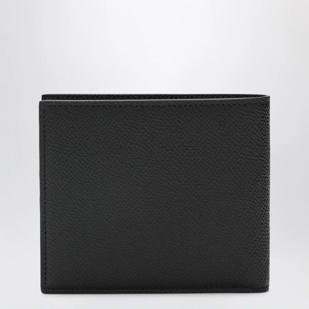 Portafoglio nero in pelle dauphine con targhetta logata