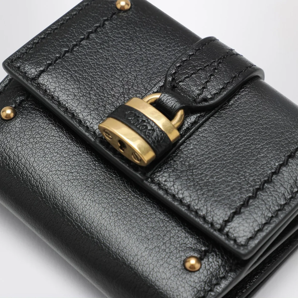 Portafoglio di Chloé in pelle nero• una tasca anteriore per monete con patta• uno scomparto per banconote• tre scomparti per carte• chiusura con bottone a scatto