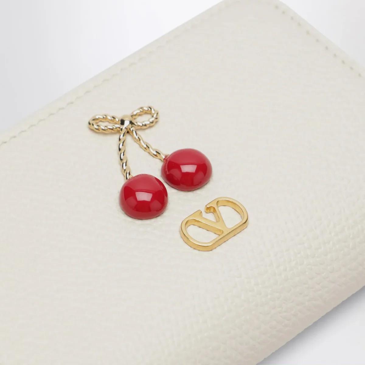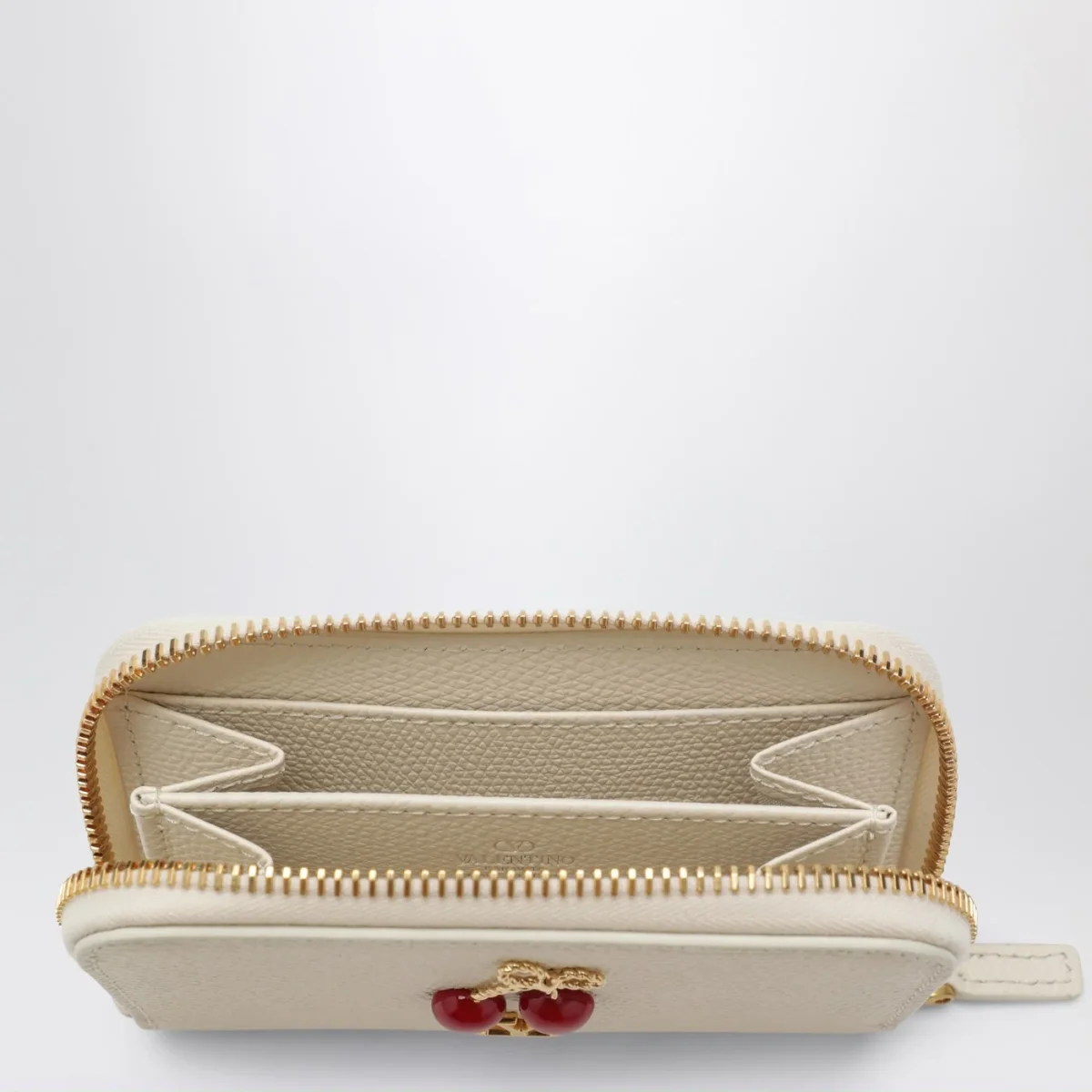 Portafoglio zip-around Cherryfic in pelle avorio