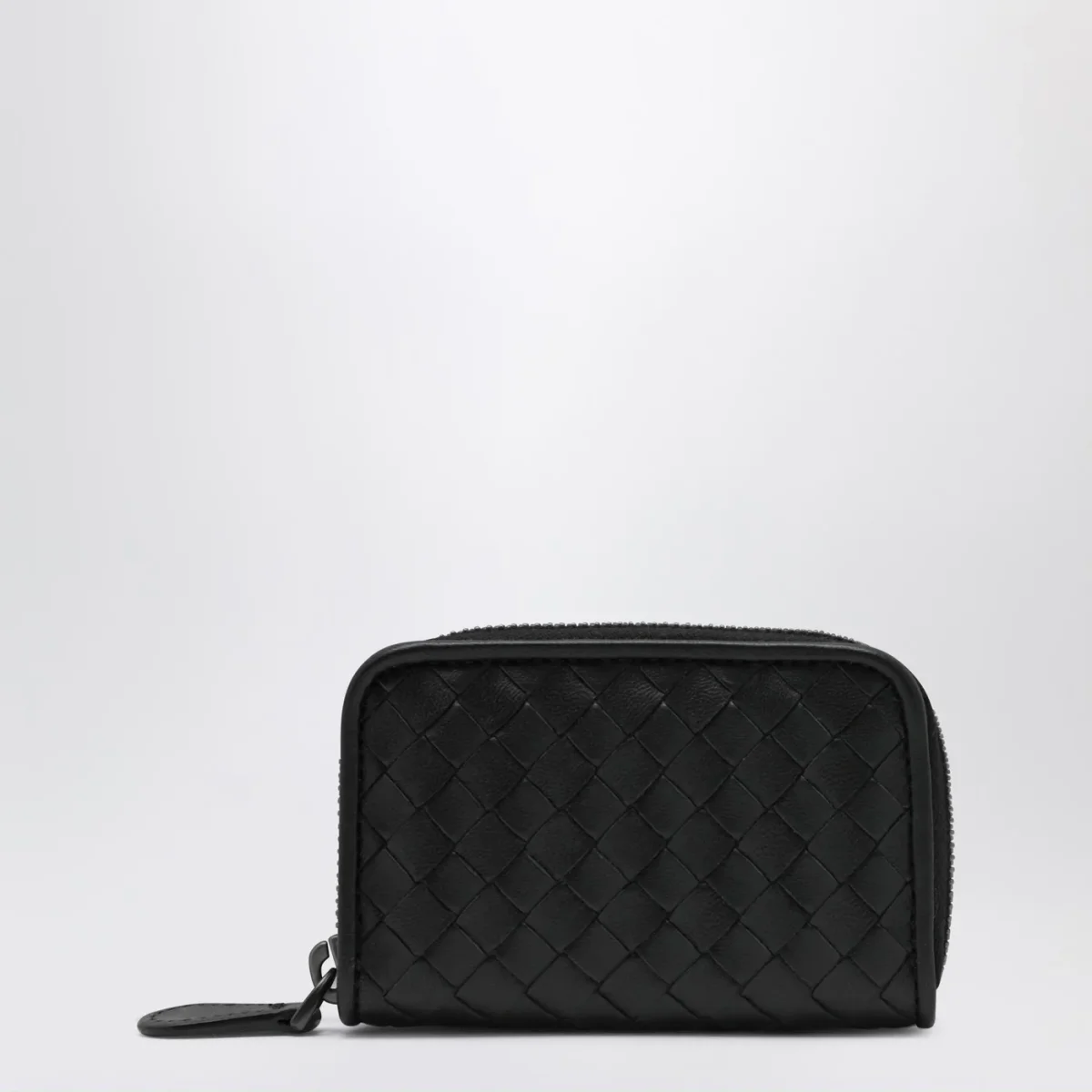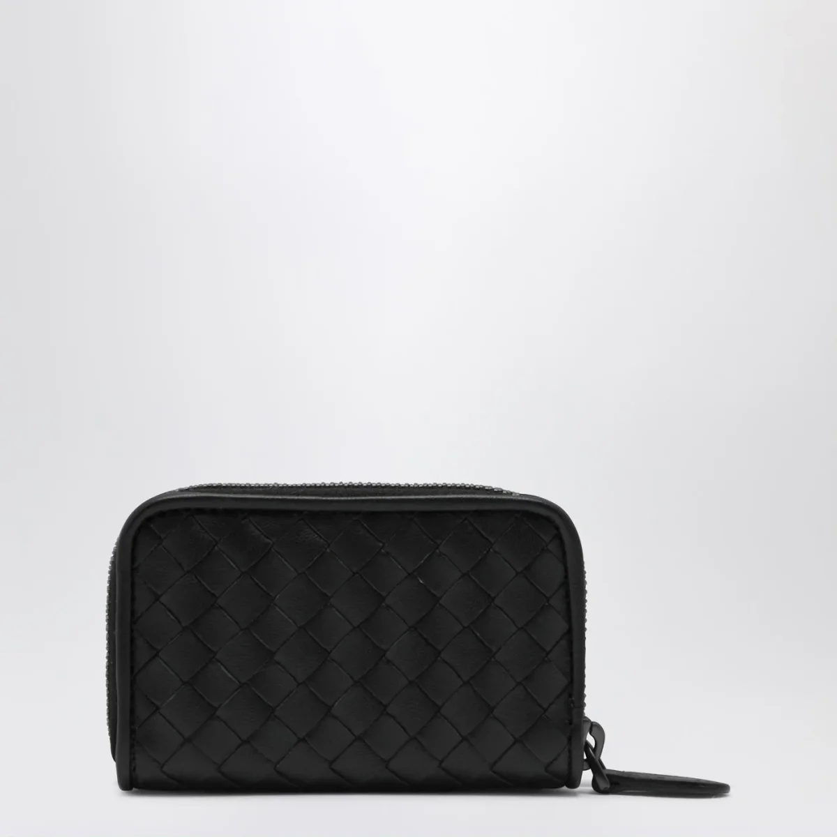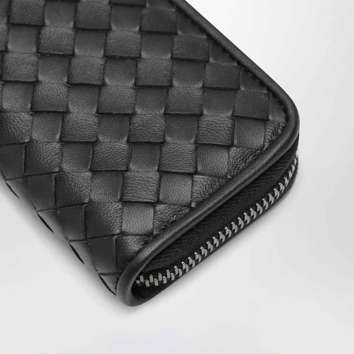 Portafoglio zip around piccolo nero in Intrecciato