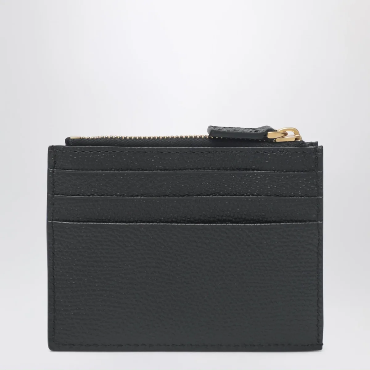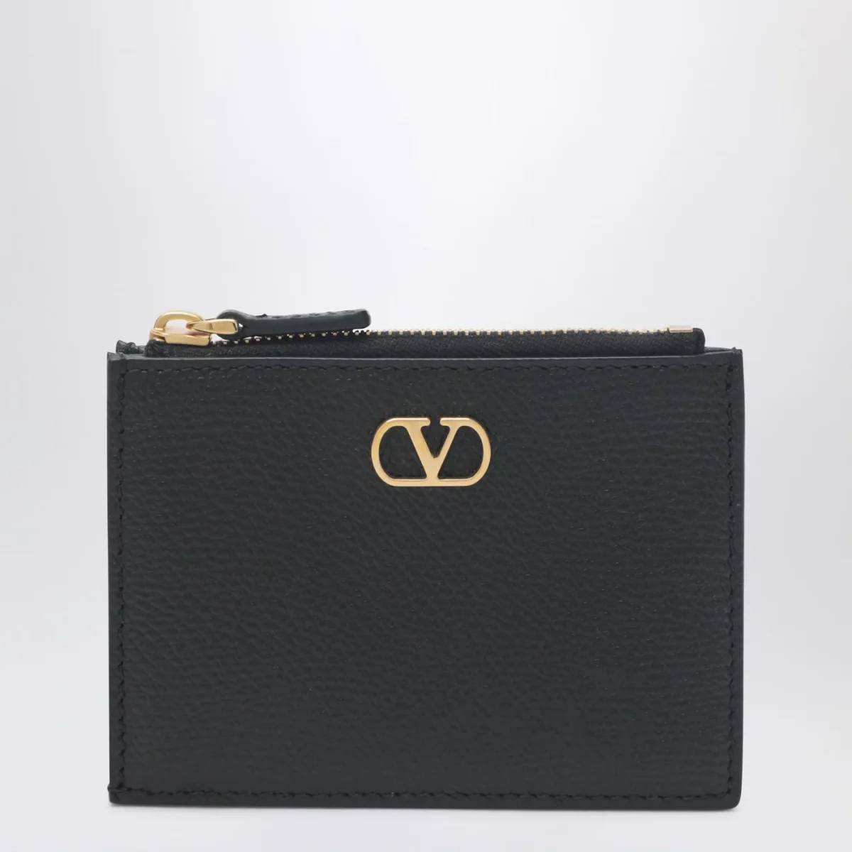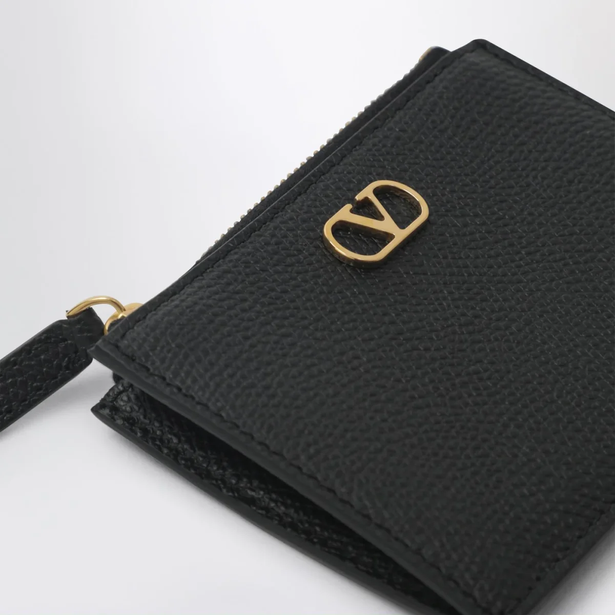 Portamonete di Valentino Garavani in pelle di vitello granata nera• Vlogo Signature in metallo di colore oro sul davanti• tasca con zip• tre slot per carte di credito sul retro