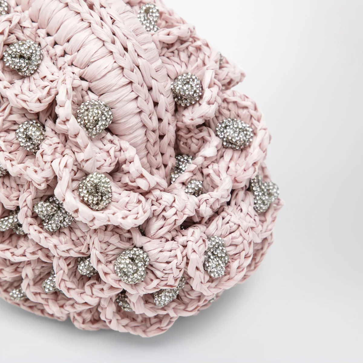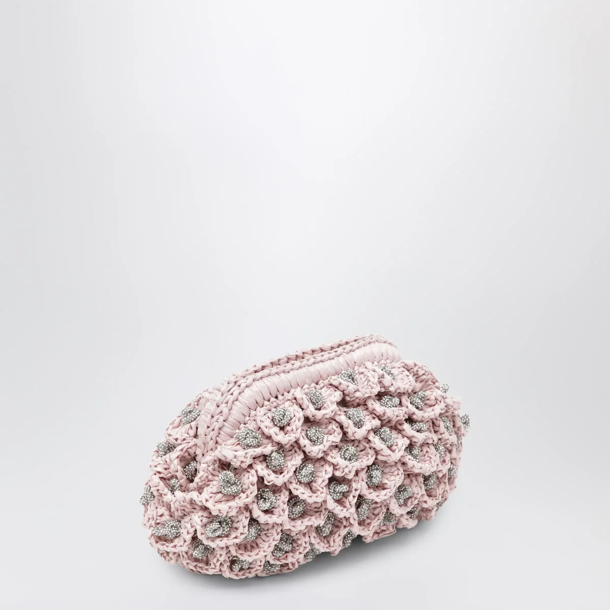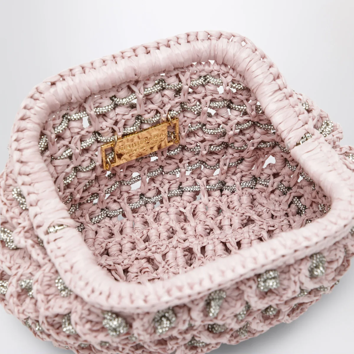 Poutch di Hibourama realizzata a mano in raffia• Colore: Rosa chiaro• Dettagli con cristalli argento• Design sfoderato