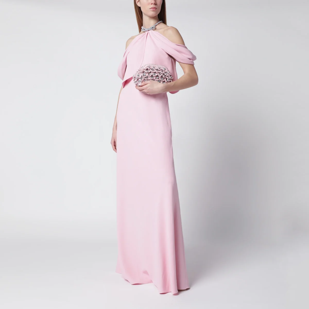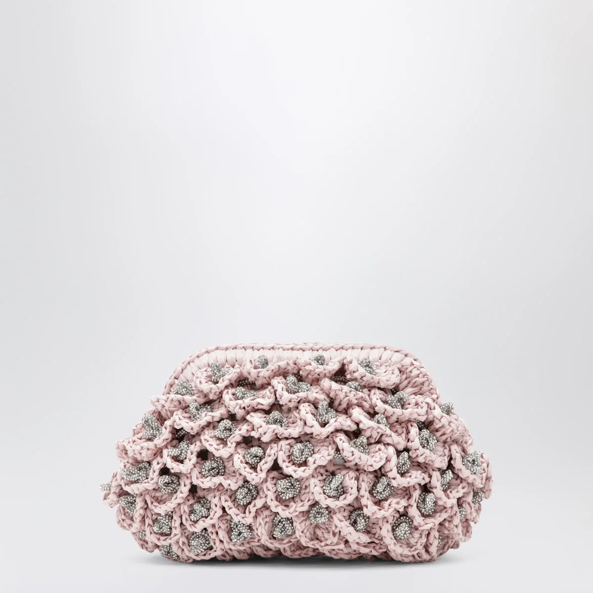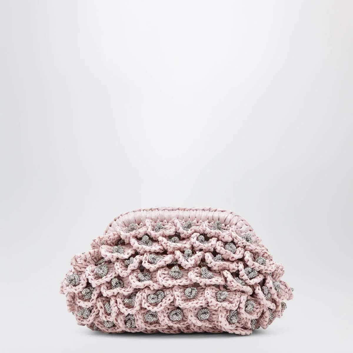 Poutch di Hibourama realizzata a mano in raffia• Colore: Rosa chiaro• Dettagli con cristalli argento• Design sfoderato