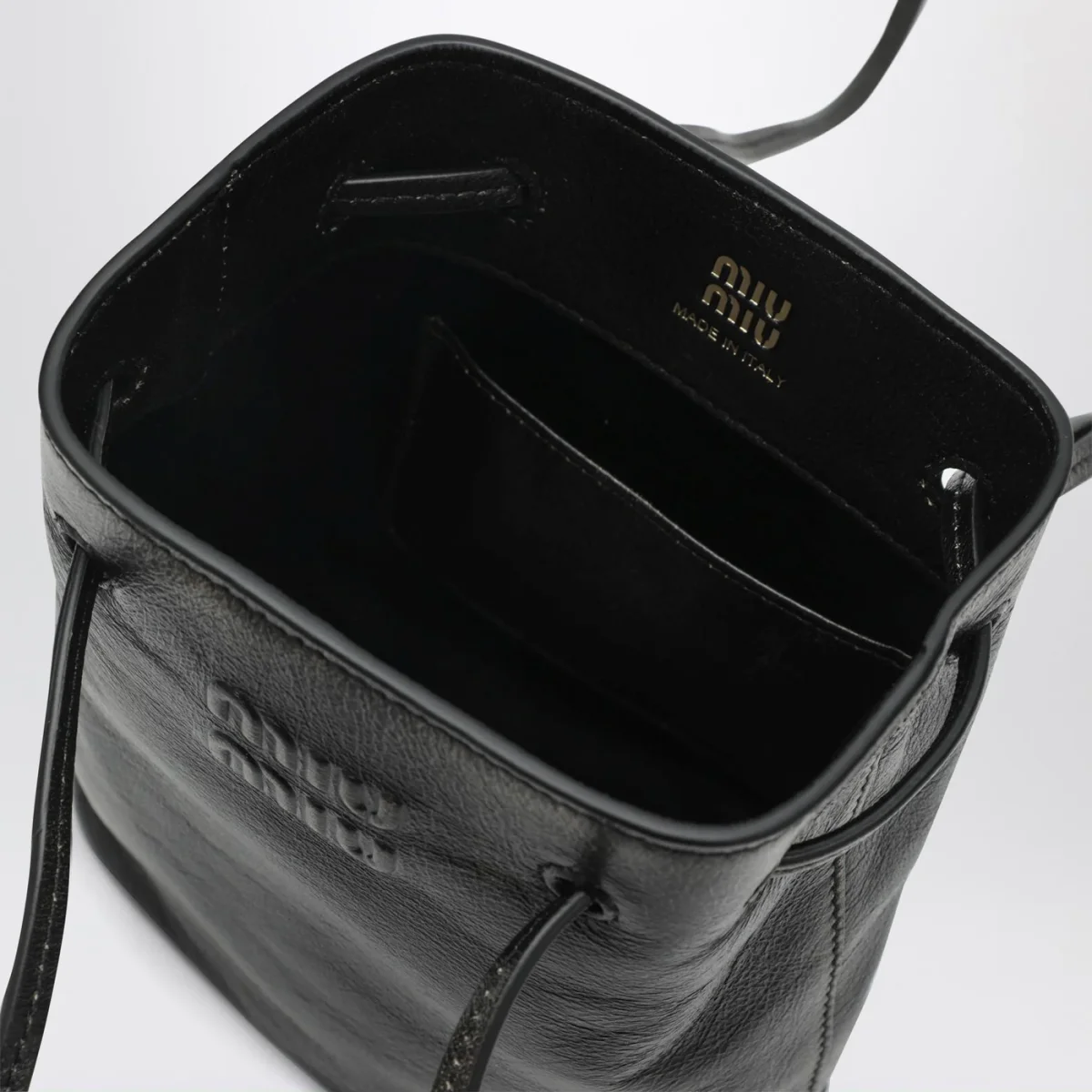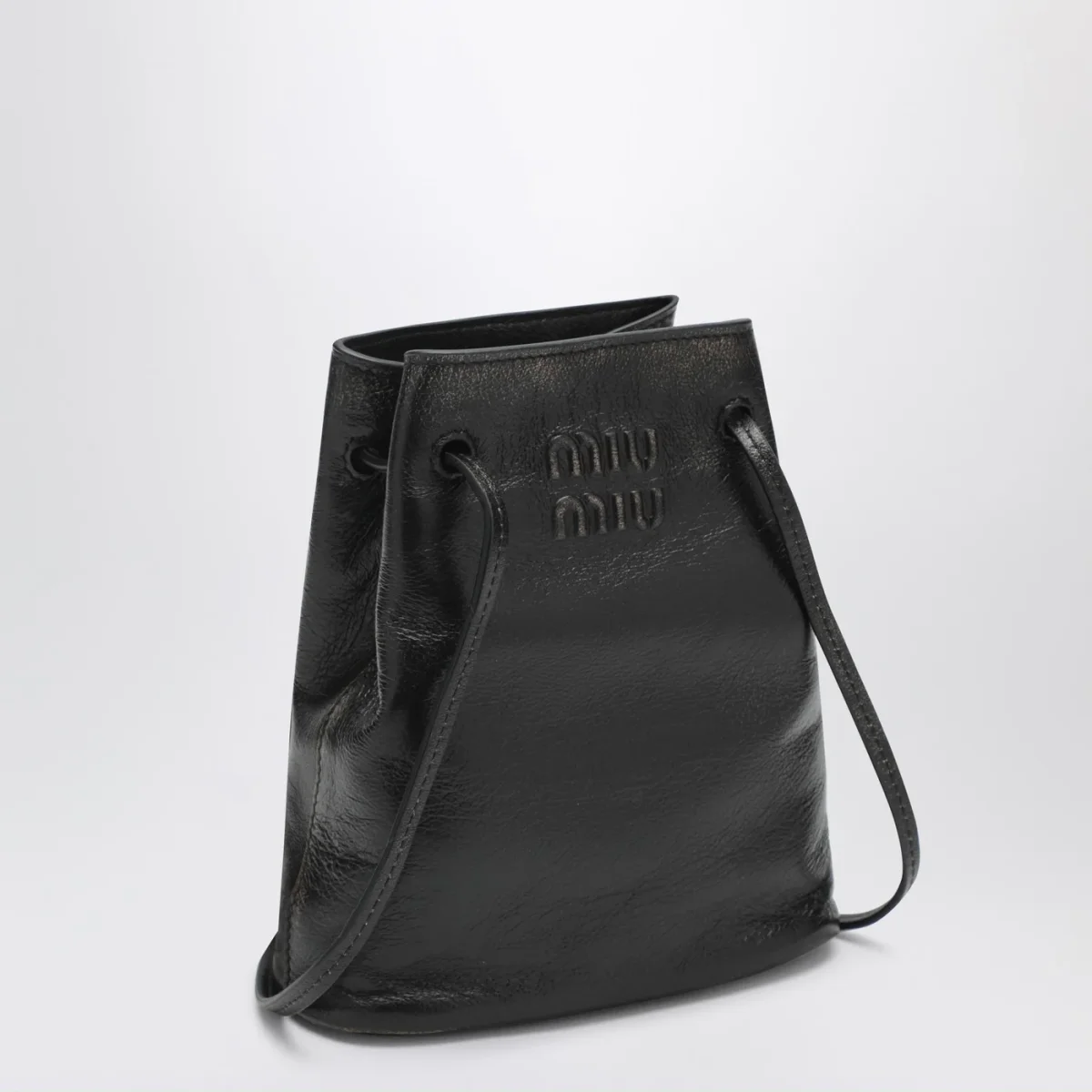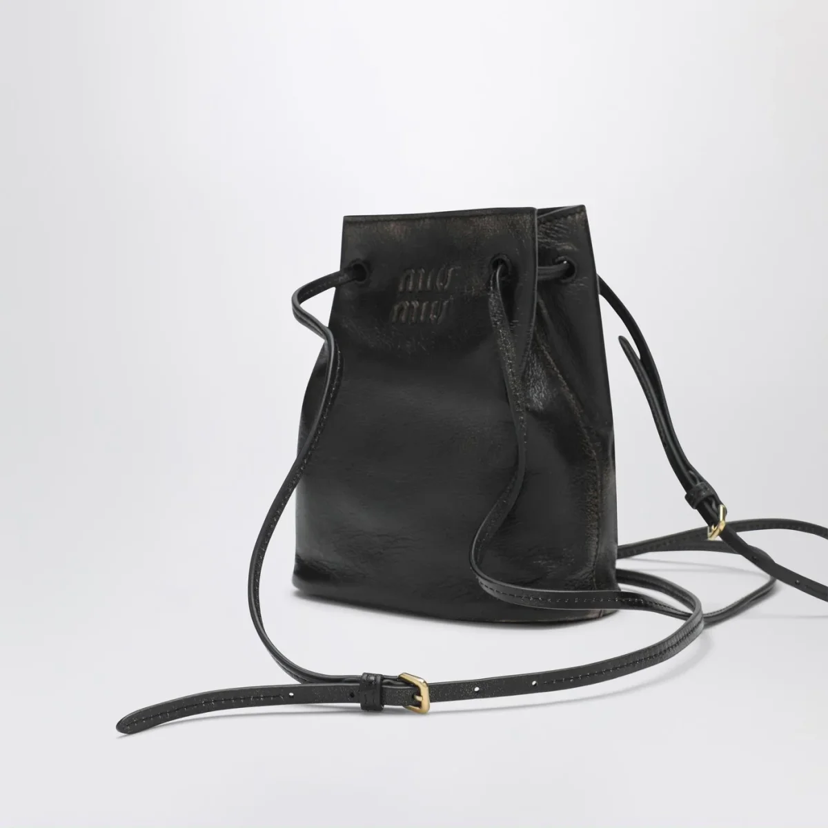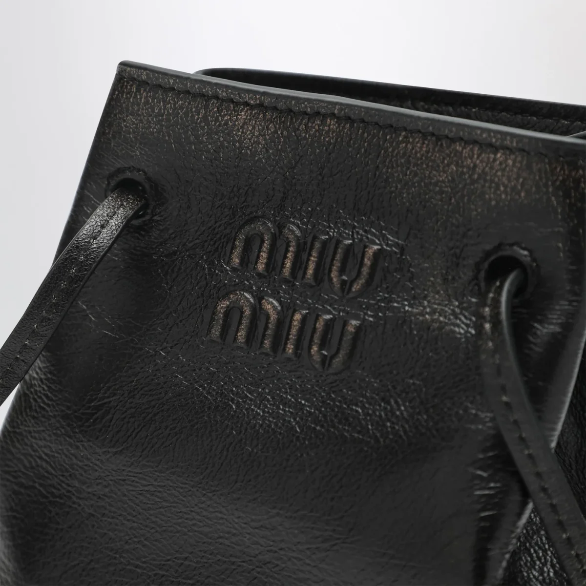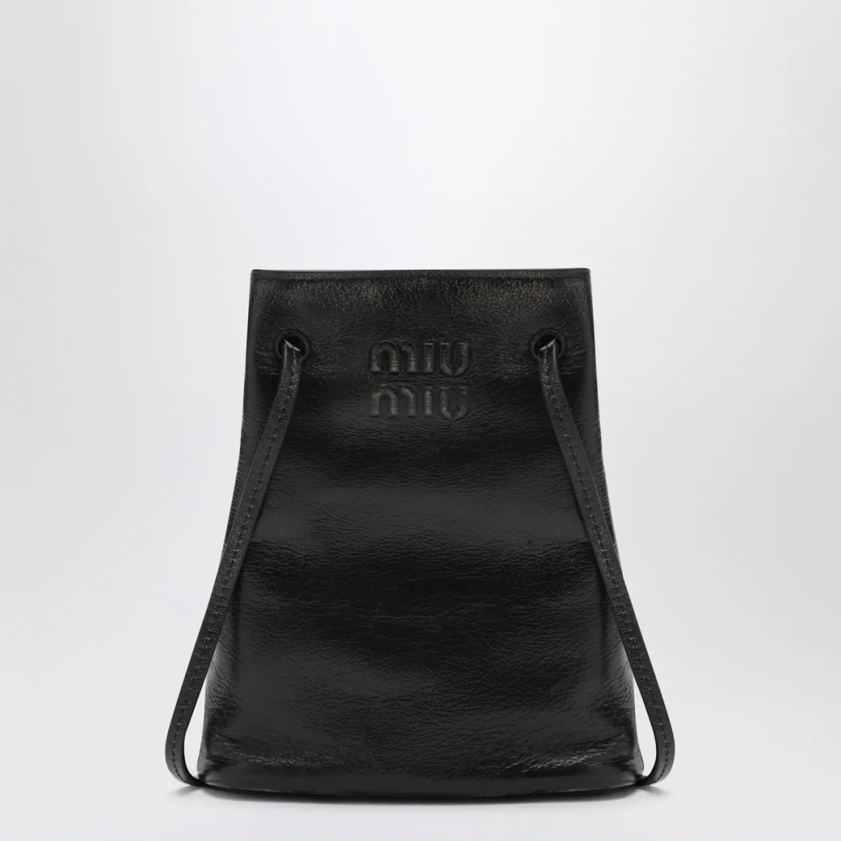 Pouch di Miu Miu in nappa effetto invecchiato marrone• tracolla regolabile in pelle• interno in raso cotone• una tasca interna• logo lettering a rilievo
