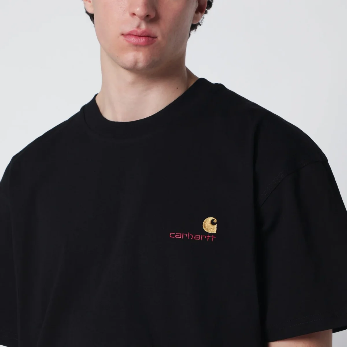 T-shirt di Carhartt WIP in jersey di cotone nera• ricamo logo American in due colori sul petto• maniche corte• vestibilità ampia• girocollo a costine