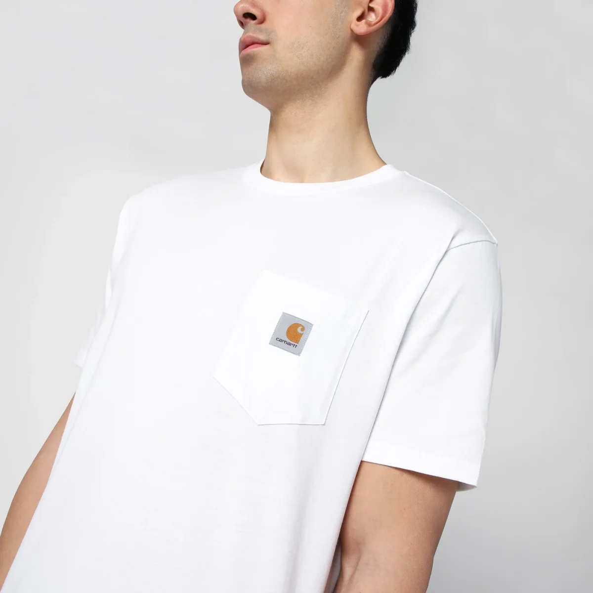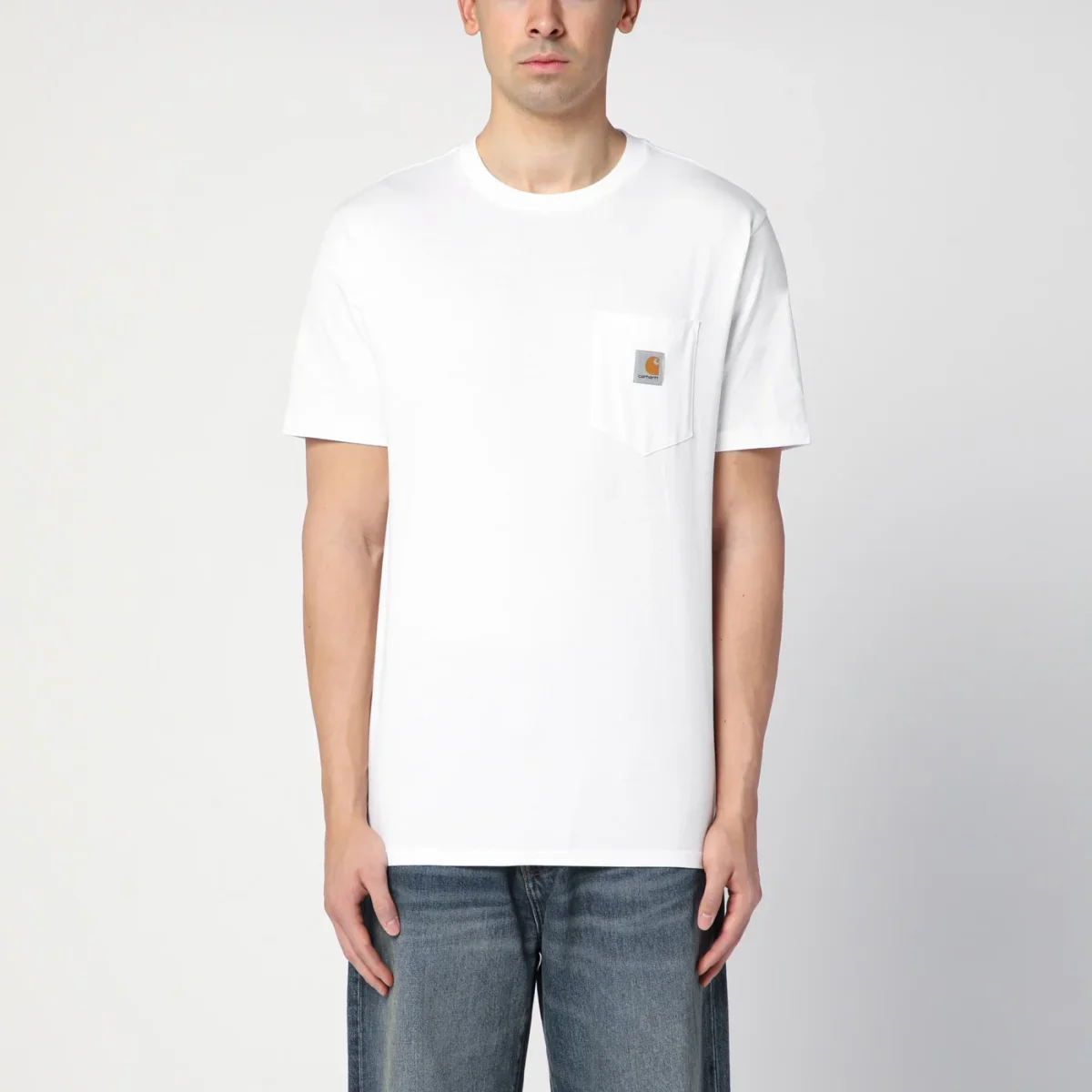 T-shirt di Carhartt WIP in cotone stretch bianca, caratterizzata da scollo arrotondato, manica corta e tasca con patch logo sul petto.