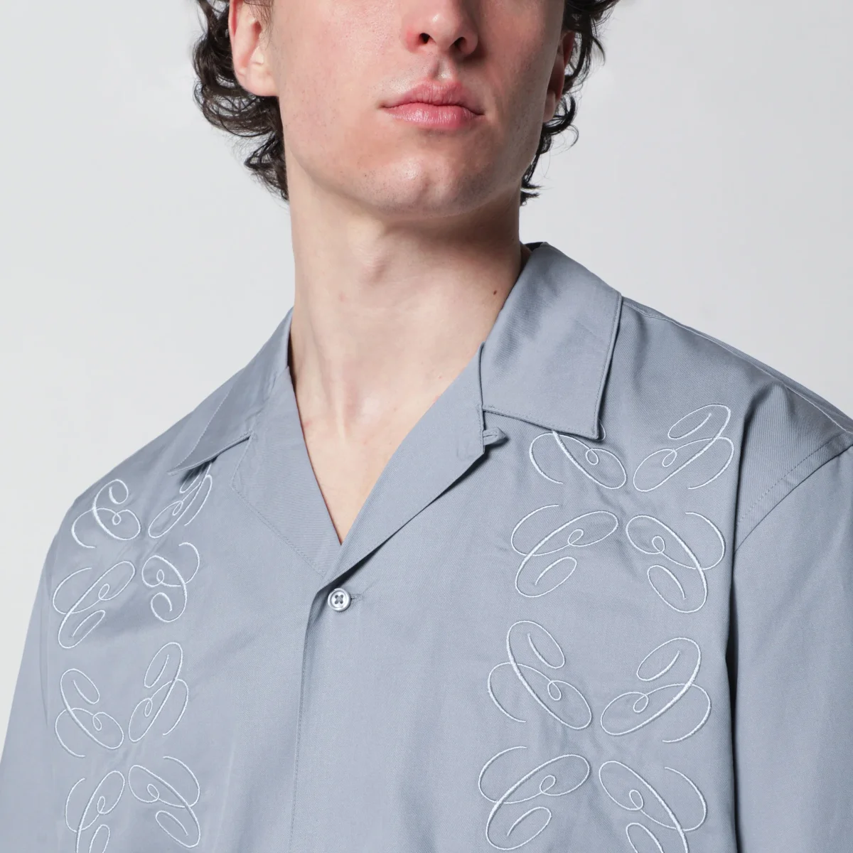 Camicia in twill leggero di Carhartt WIP• Colore: Mirror• Vestibilità ampia• Chiusura frontale con bottoni• Colletto hawaiano• Ricamo grafico sul davanti