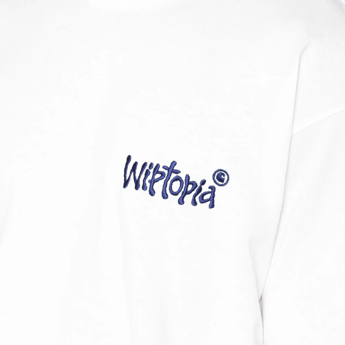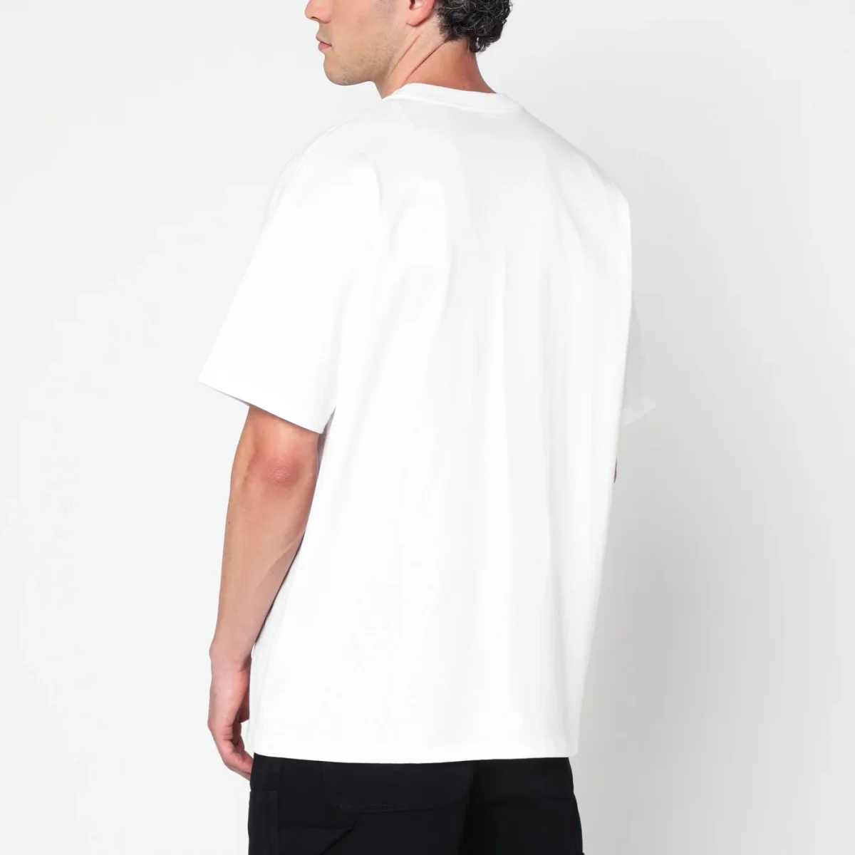 T-shirt di Carhartt WIP in cotone organico bianca, caratterizzata da vestibilità ampia, design girocollo, manica corta e ricamo grafico sul petto.