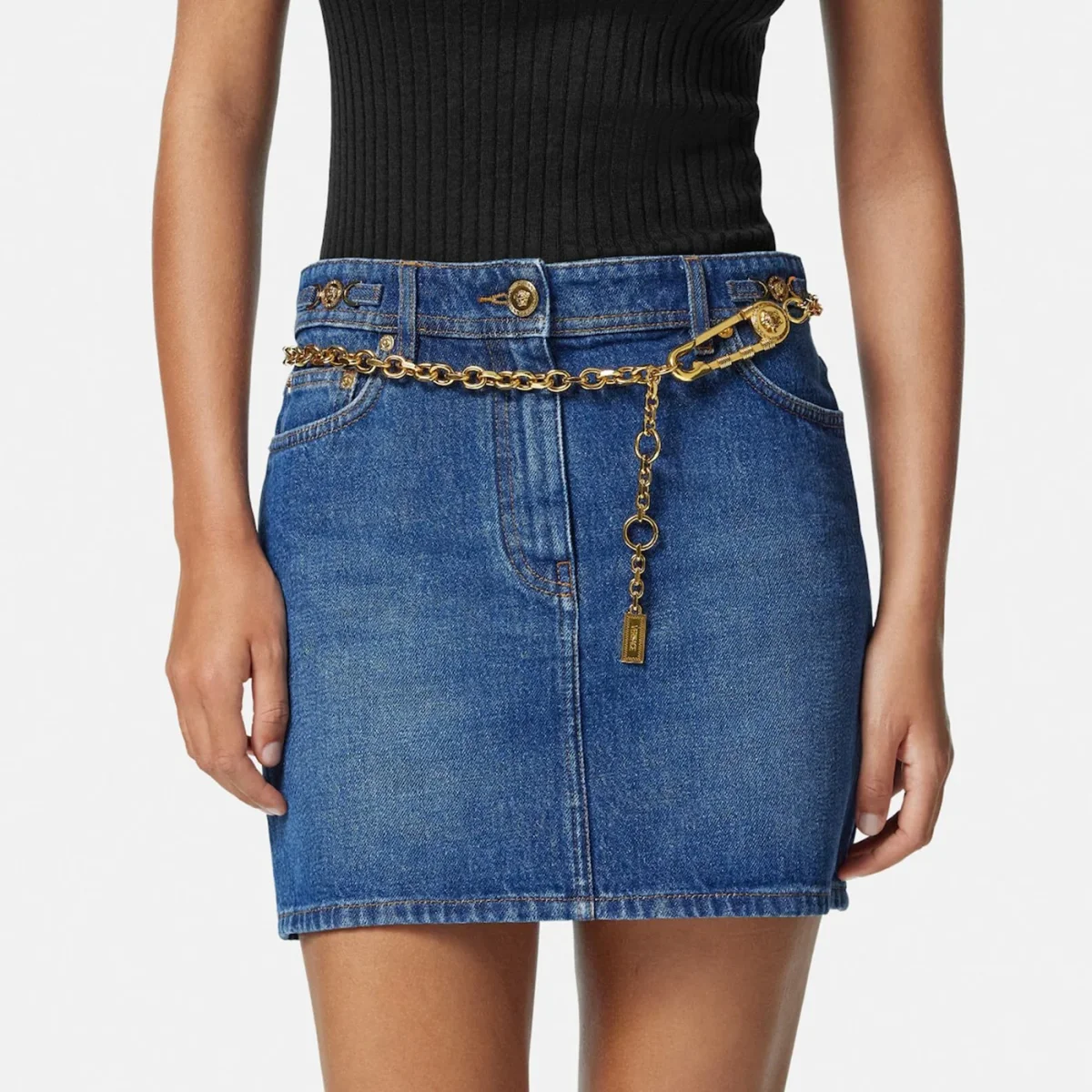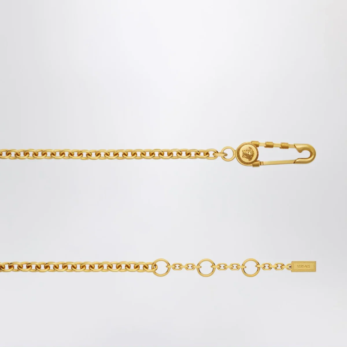 Cintura di Versace a catena realizzata con chiusura Safety Pin• chiusura con moschettone