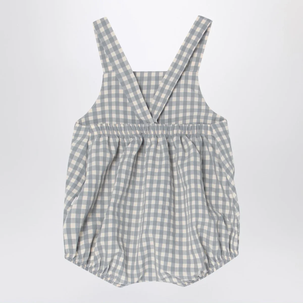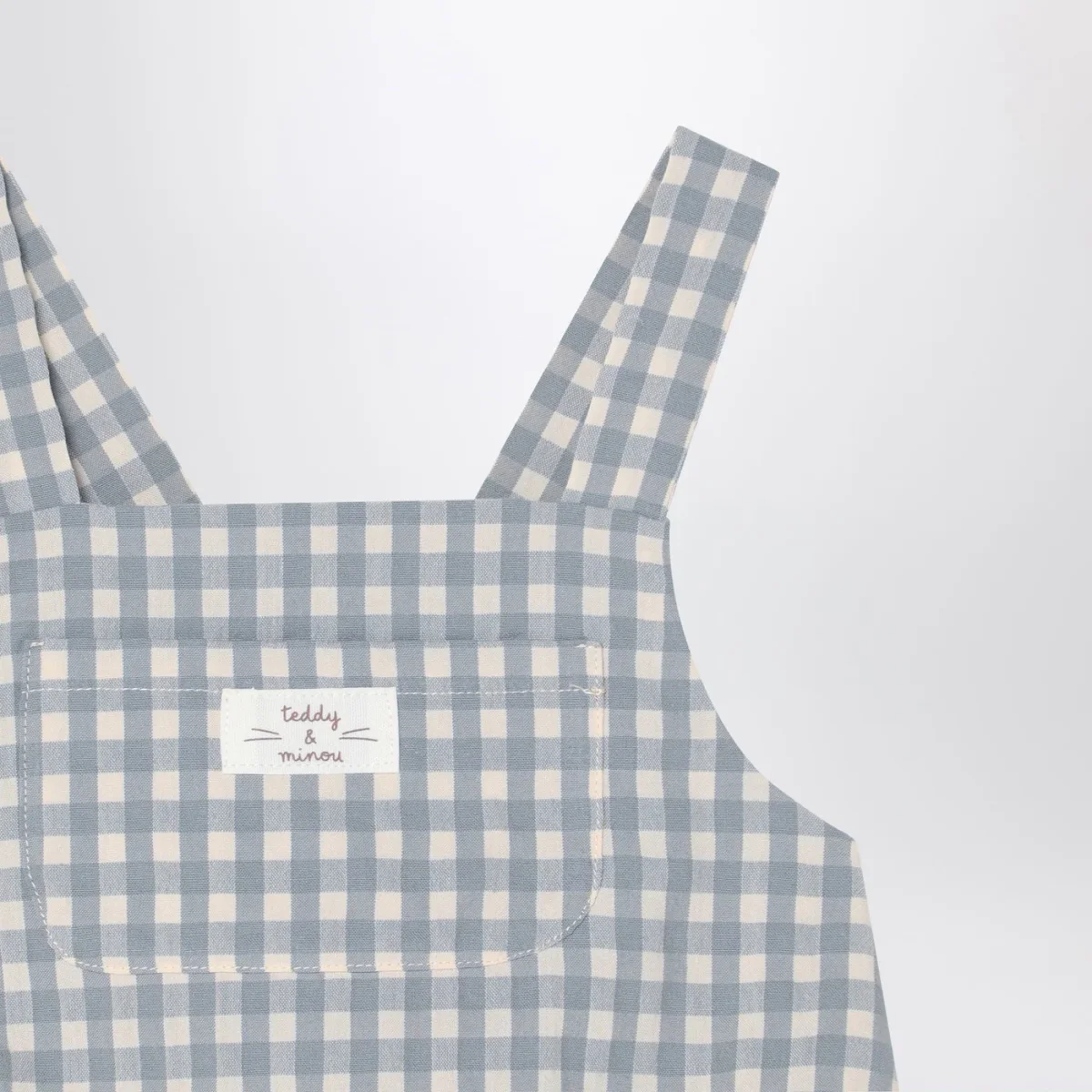 Salopette di Teddy & Minou in cotone a quadretti, caratterizzata da una tasca applicata sul davanti con patch logo, spalline incrociate sul retro, bordi elasticizzati, bottoncini a pressione sul cavallo e t-shirt bianca con manica corta.