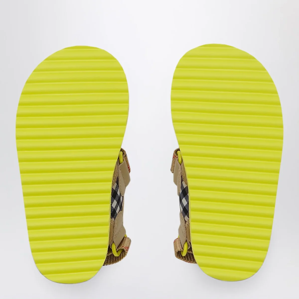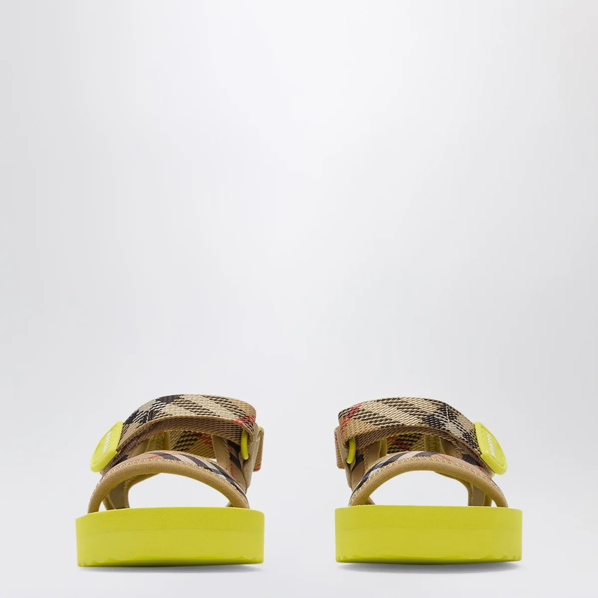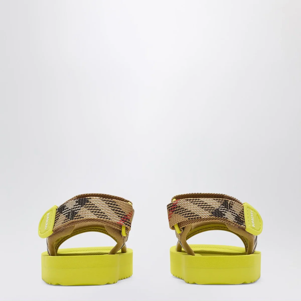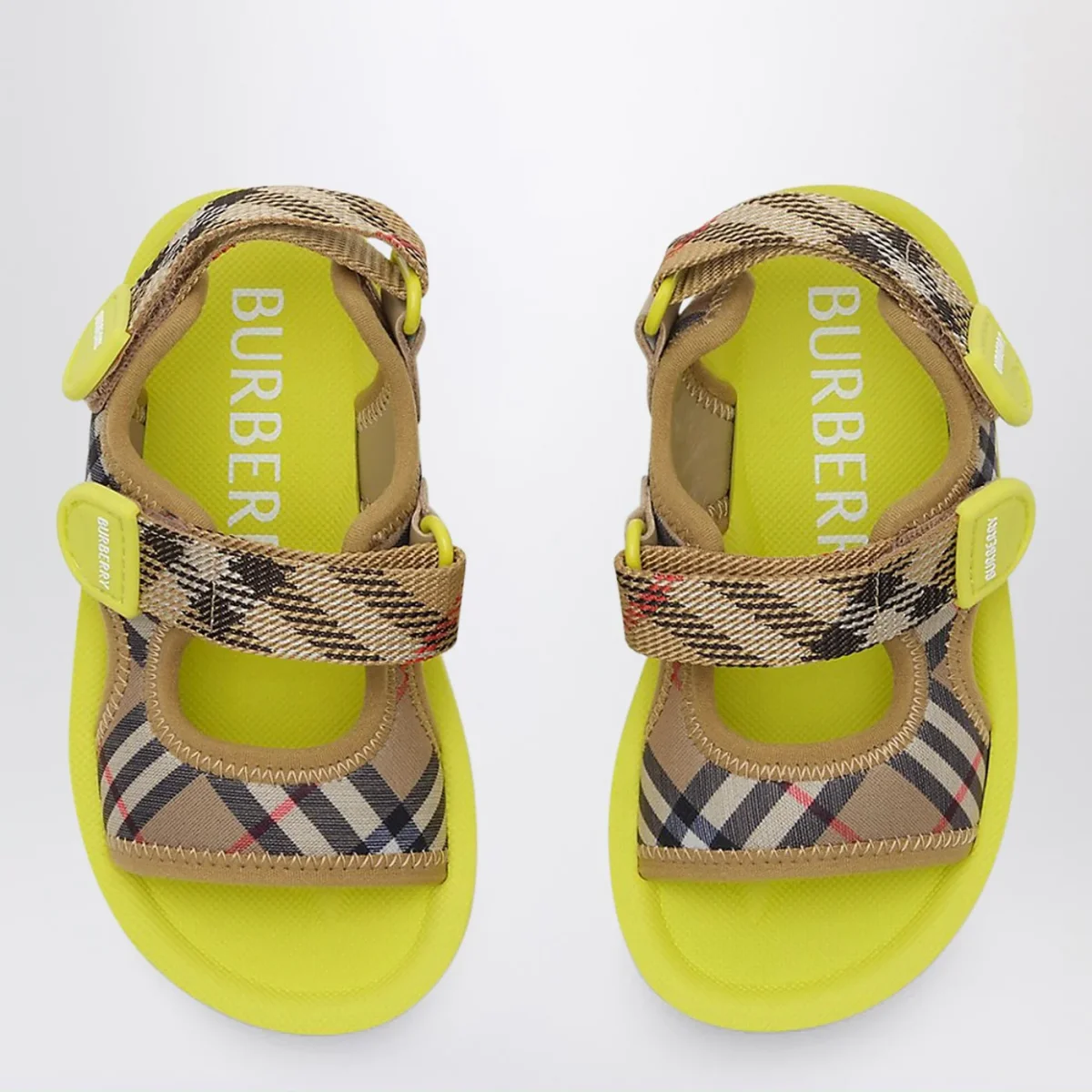 Sandali di Burberry in neoprene intessuto con motivo Check beige sabbia• logo su cinturini• chiusura a strappo in velcro• punta tonda aperta• soletta sagomata• suola in gomma EVA