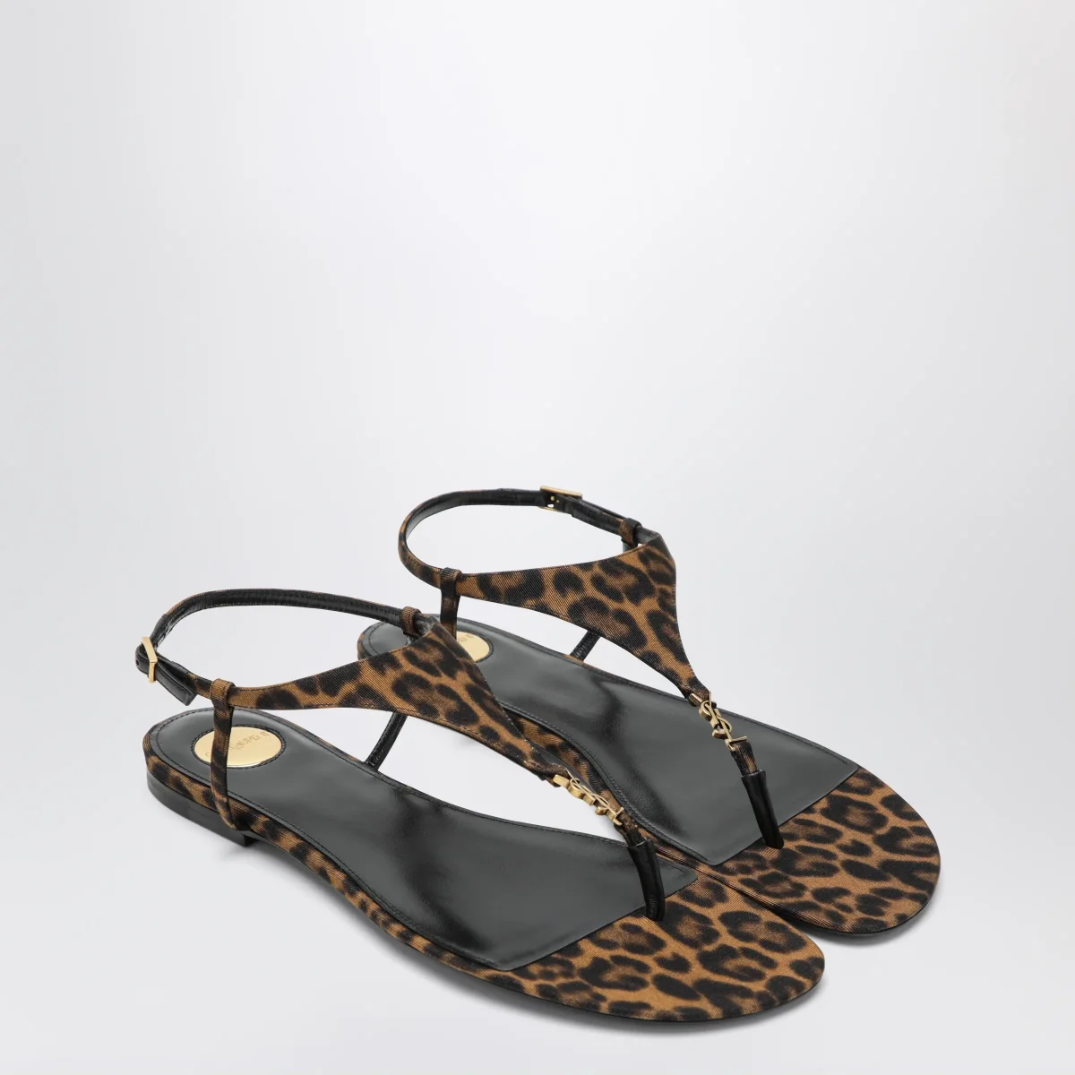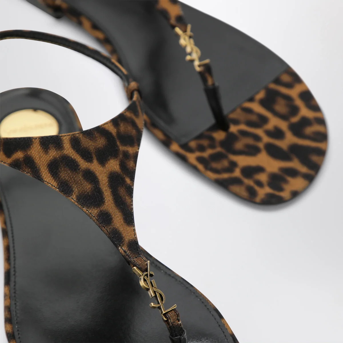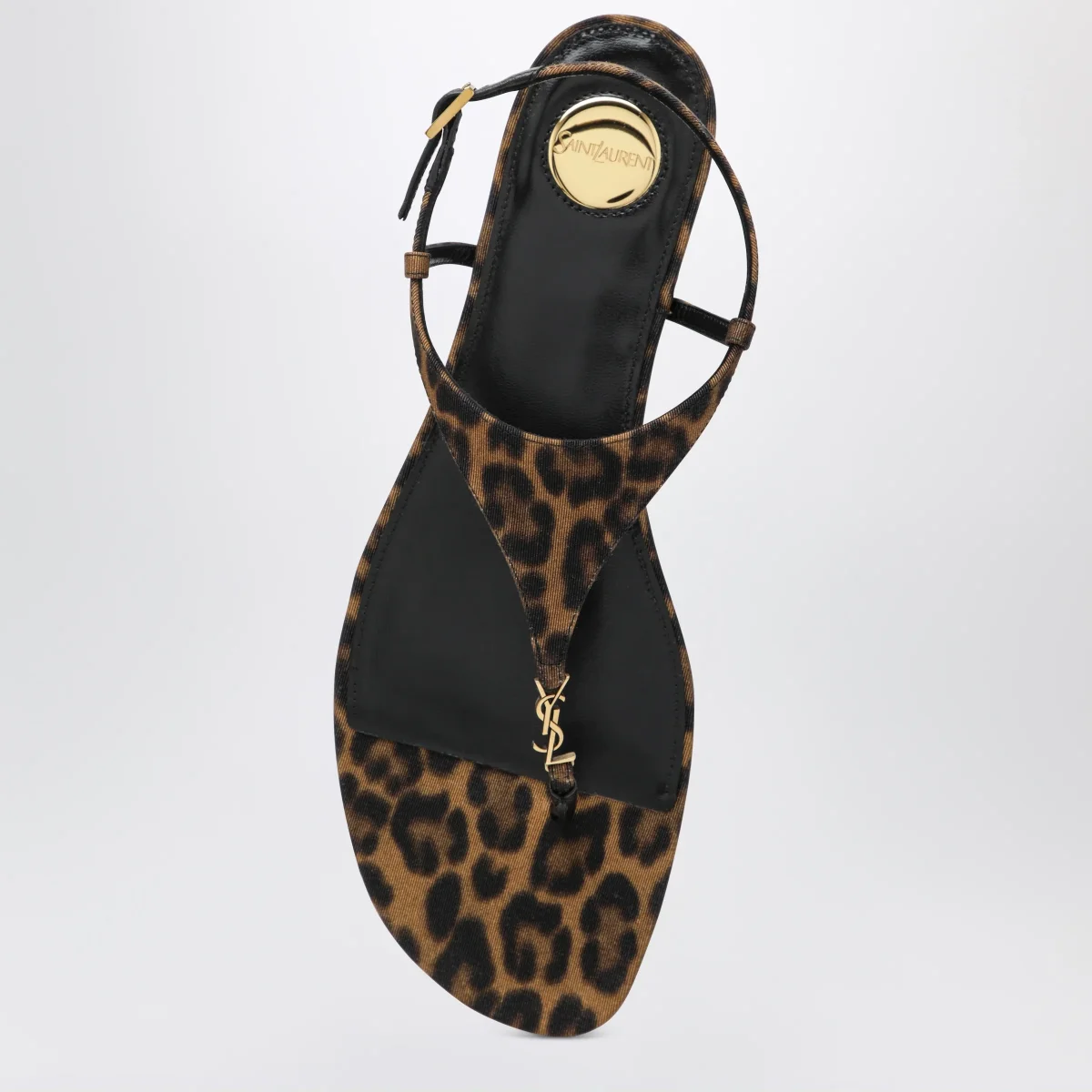 Sandali in gros-grain di Saint Laurent• Colore: Stampa leopardo marrone• Tomaia triangolare con logo Cassandre in metallo color bronzo• Cinturino regolabile alla caviglia• Suola in cuoio• Targhetta rotonda in metallo con incisione Saint Laurent sulla soletta